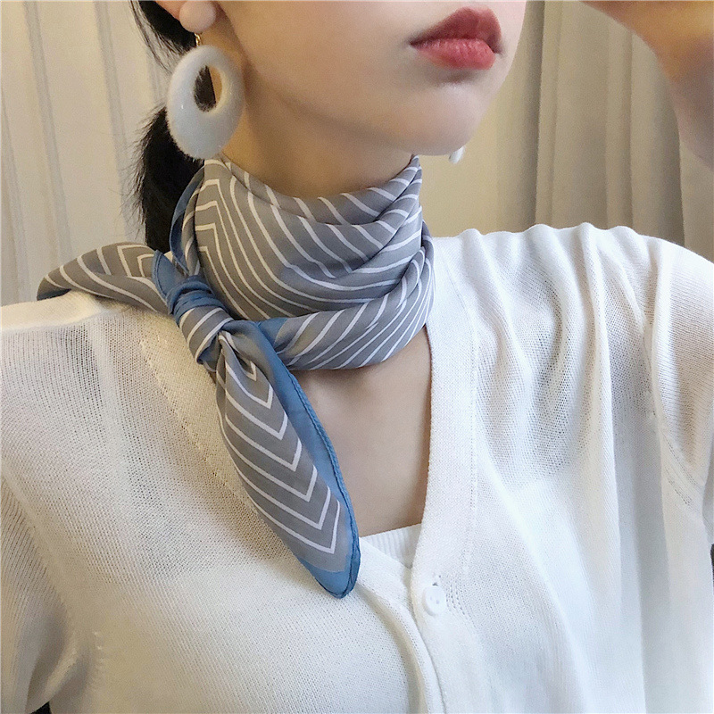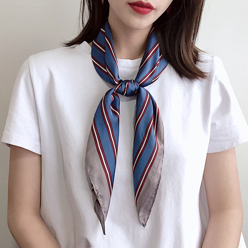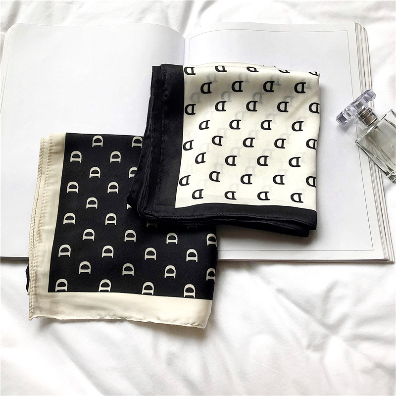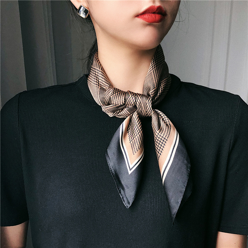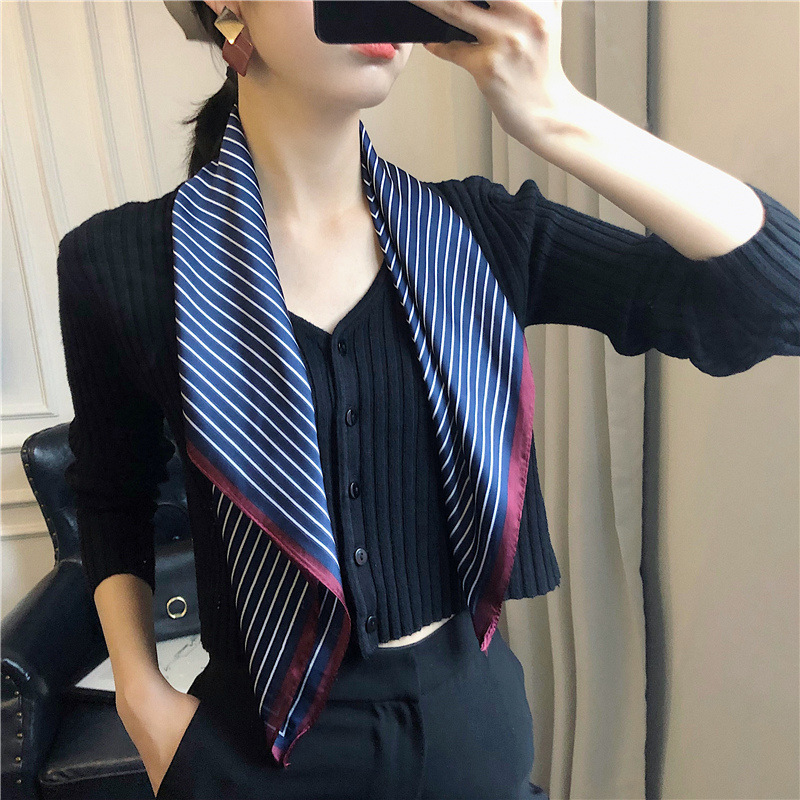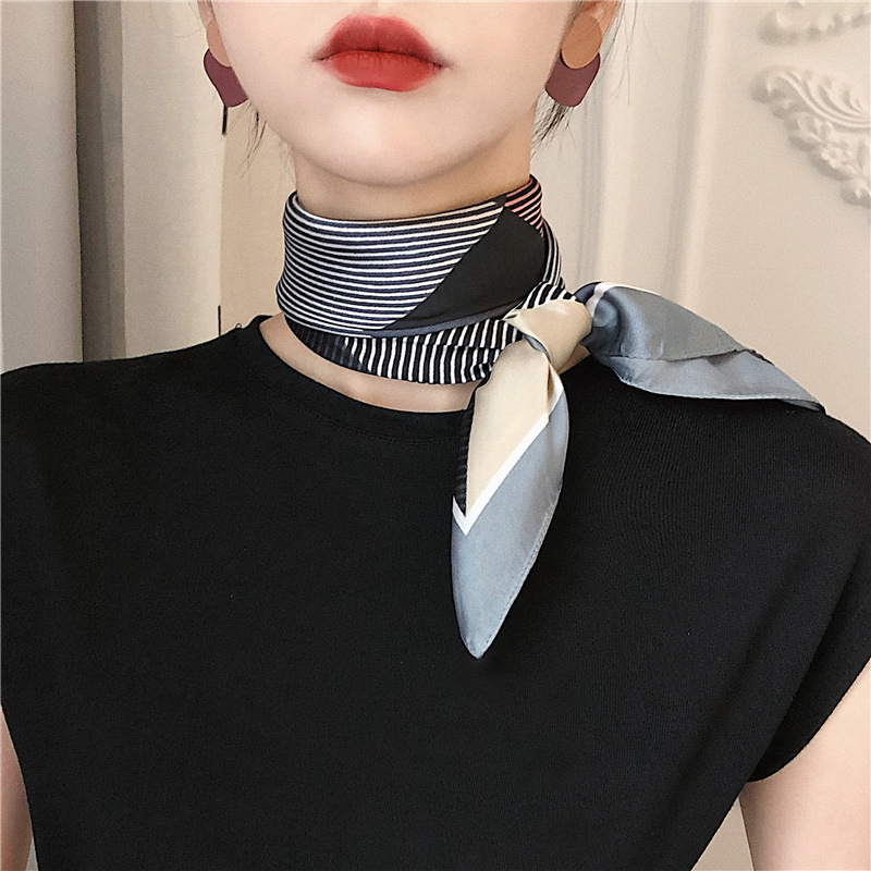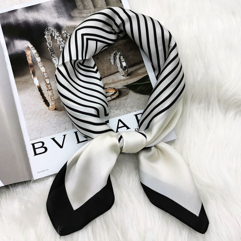 새로운 스타일 실크 스카프 Anjia Sun Li 같은 스타일 우아한 스퀘어 스카프 작은 향기 간단한 한국 스타일 흑백 스트라이프 전문 작은 스카프