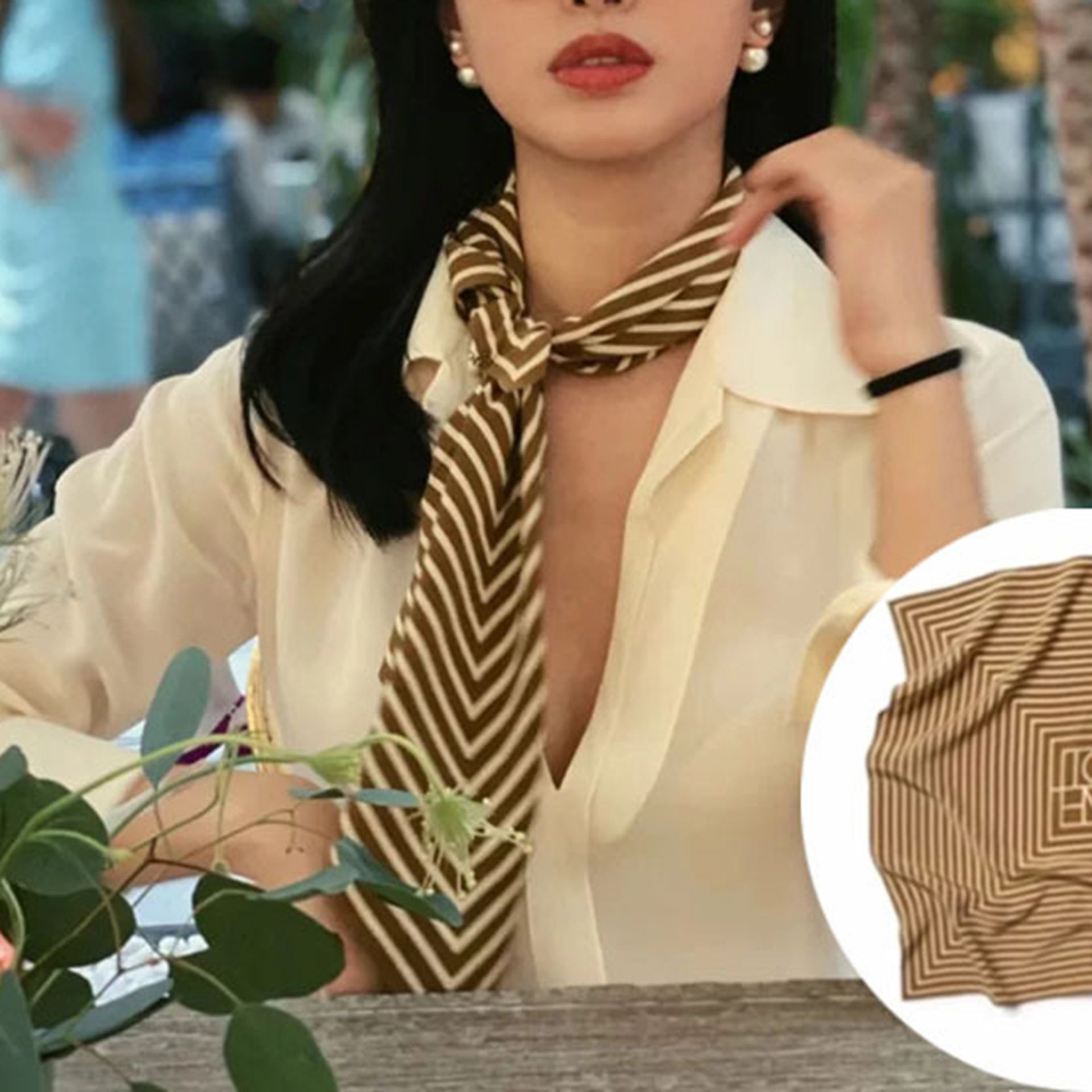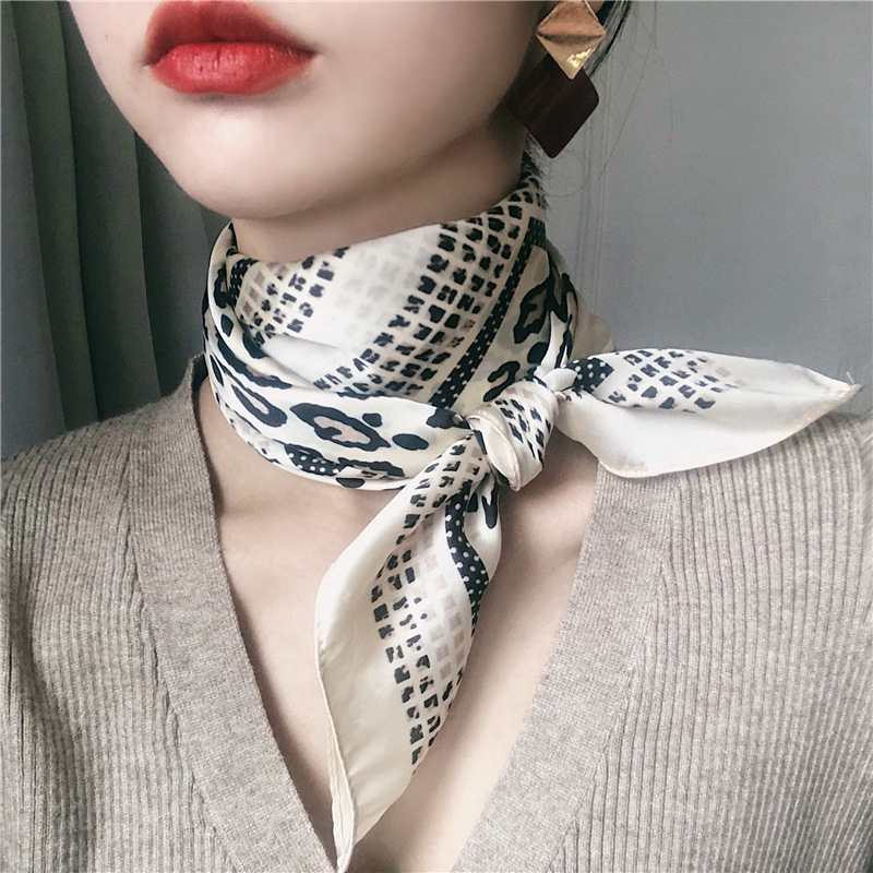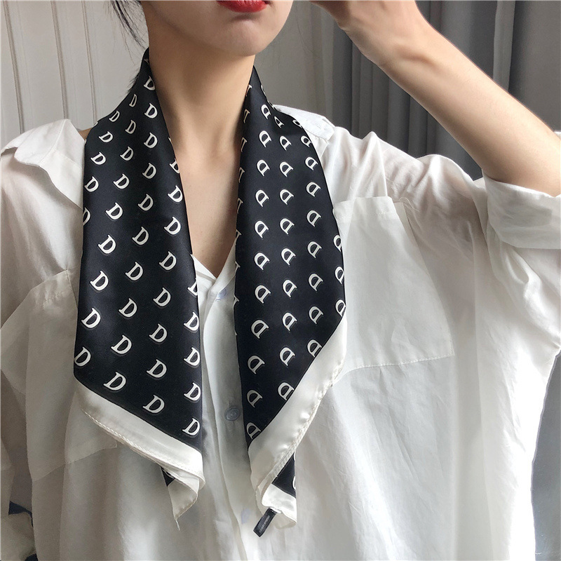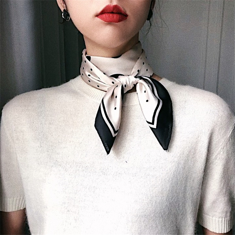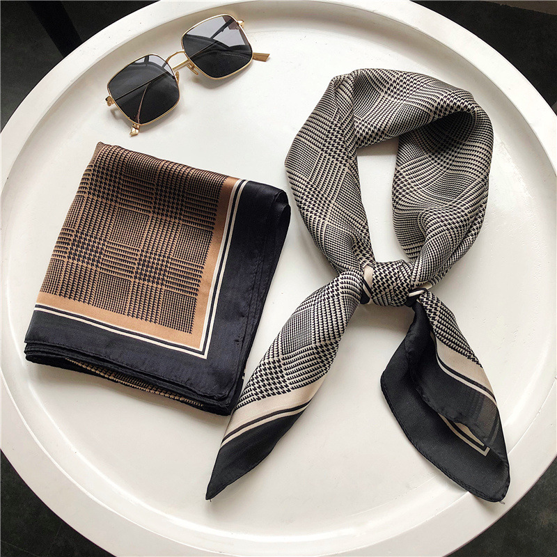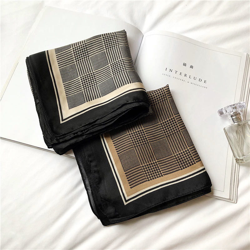 새로운 스타일 실크 스카프 Anjia Sun Li 같은 스타일 우아한 스퀘어 스카프 작은 향기 간단한 한국 스타일 흑백 스트라이프 전문 작은 스카프