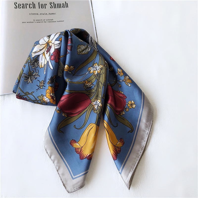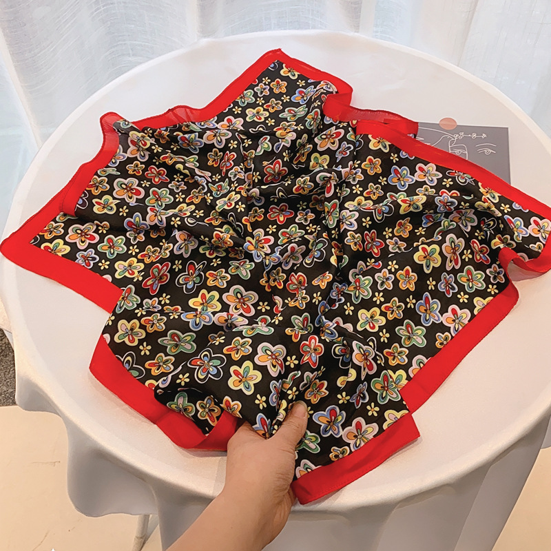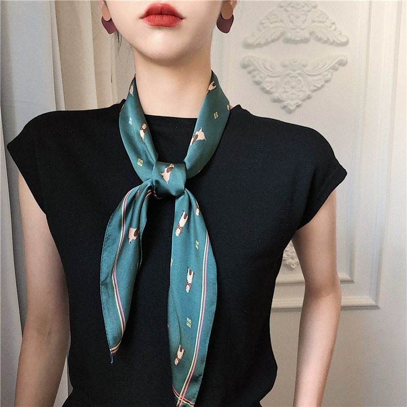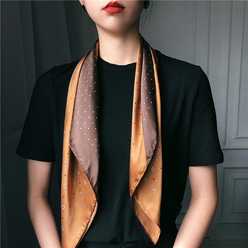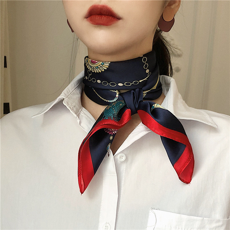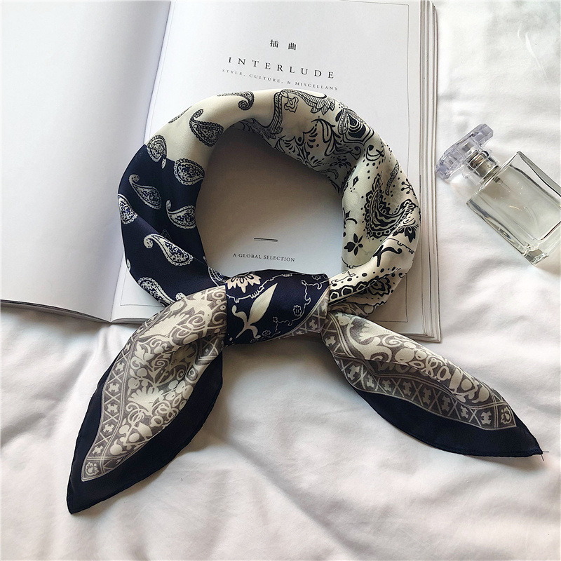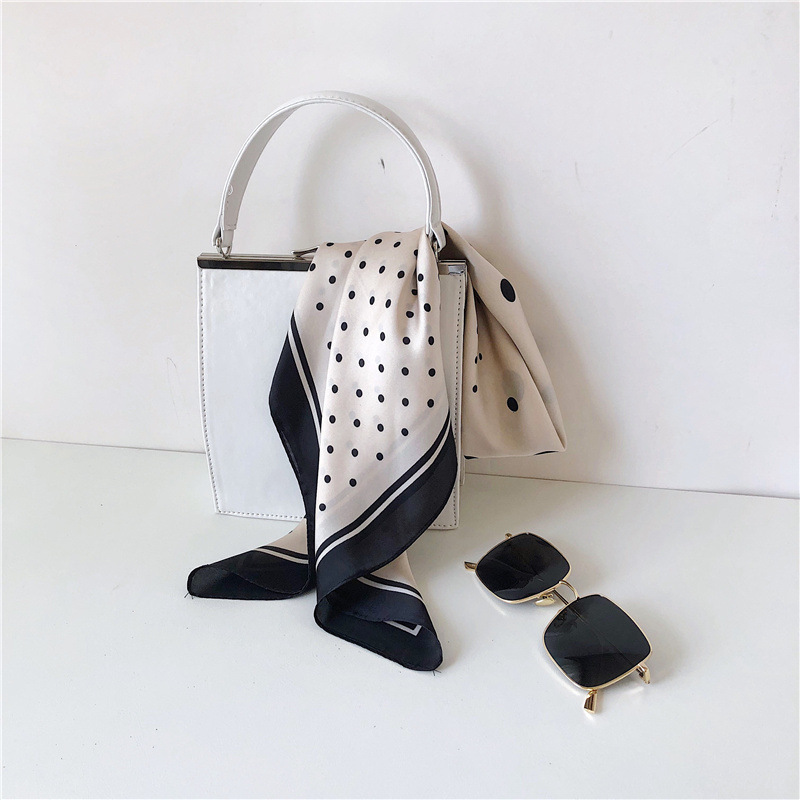 새로운 스타일 실크 스카프 Anjia Sun Li 같은 스타일 우아한 스퀘어 스카프 작은 향기 간단한 한국 스타일 흑백 스트라이프 전문 작은 스카프