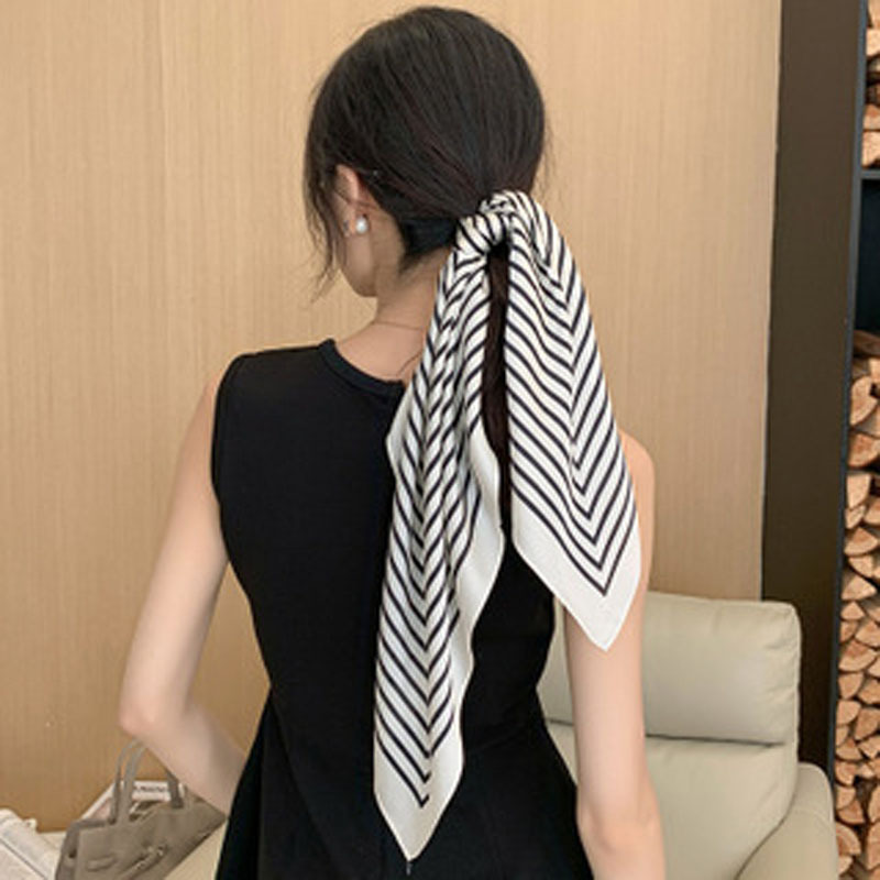 새로운 스타일 실크 스카프 Anjia Sun Li 같은 스타일 우아한 스퀘어 스카프 작은 향기 간단한 한국 스타일 흑백 스트라이프 전문 작은 스카프스토어 가기