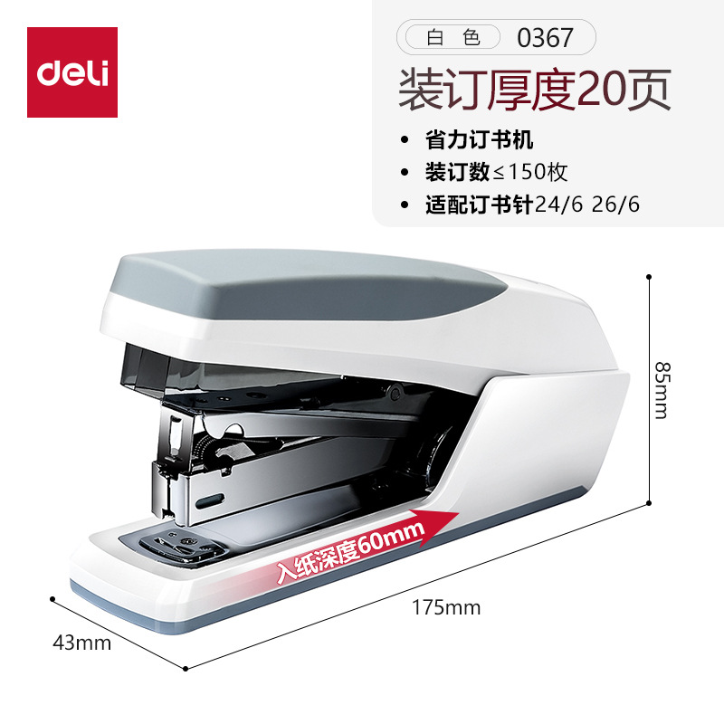 델리 문구 0367 노동 절약 스테이플러 주문 가능 20 페이지 스테이플러 제본기 사무용품