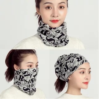 새로운 여성용 목 소매 가을과 겨울 2 층 따뜻한 목 보호 다양한 목 모자 머리띠 여성용 풀오버 모자 마스크 트위스트 모자