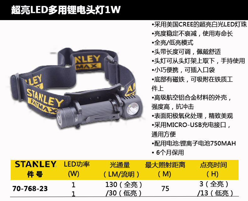 • 70-768-23U 리튬 배터리 3-in-1 다기능 헤드램프 (스탠리)