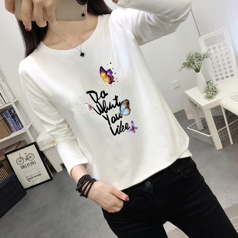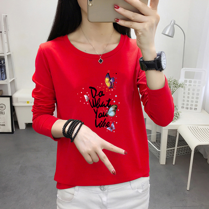 [재고] 인터넷 연예인 긴 소매 티셔츠 여성의 유행 가을 서양 스타일 겉옷 느슨한 플러스 사이즈 탑 한국베이스 셔츠스토어 가기