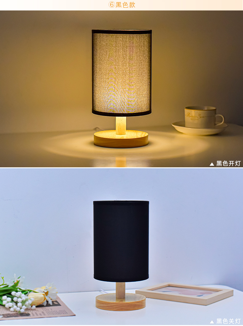 단단한 나무 직물 usb 작은 테이블 램프 침실 침대 옆 램프 연구 기숙사 led 밤 빛 창조적 인 분위기 램프 장식