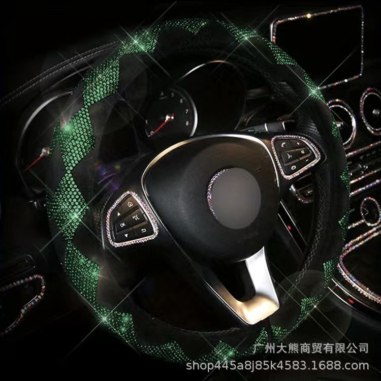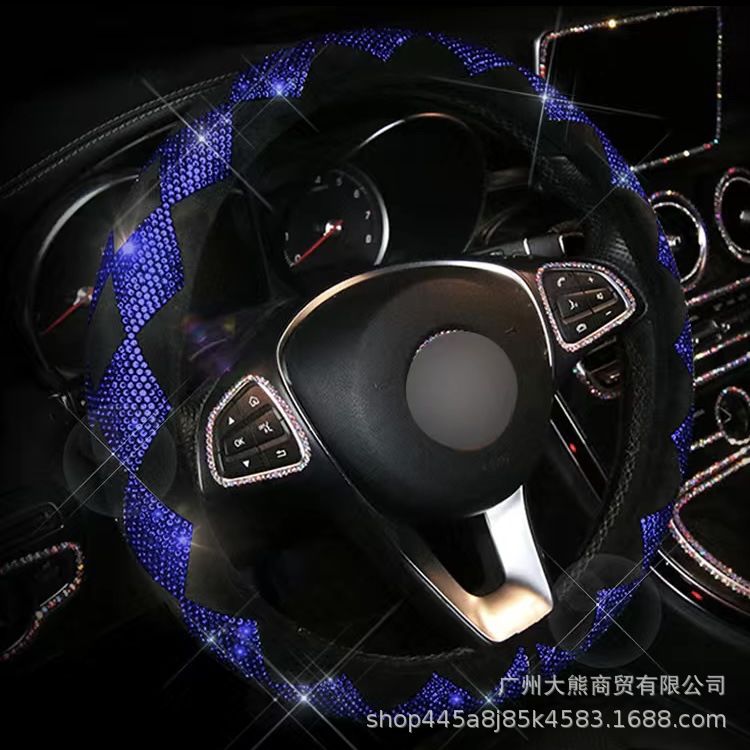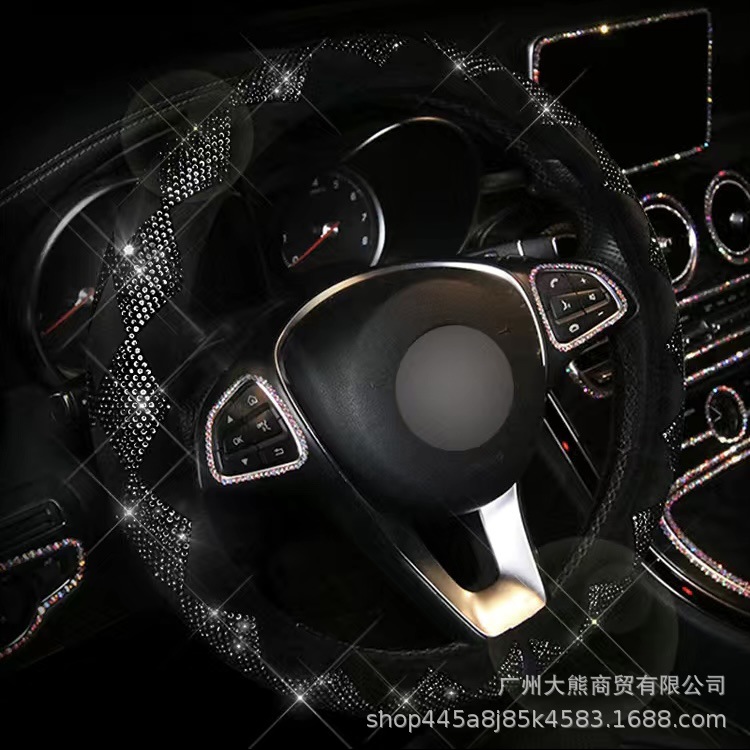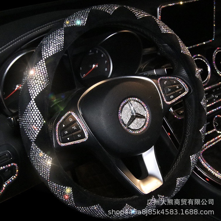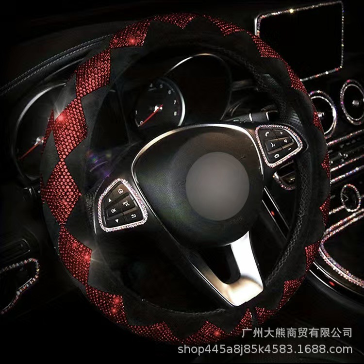 다이아몬드와 모조 다이아몬드와 자동차 전체 다이아몬드 스티어링 휠 커버 사계절 유니버설 자동차 미끄럼 방지 커버 겨울 플러시 패션 여성스토어 가기