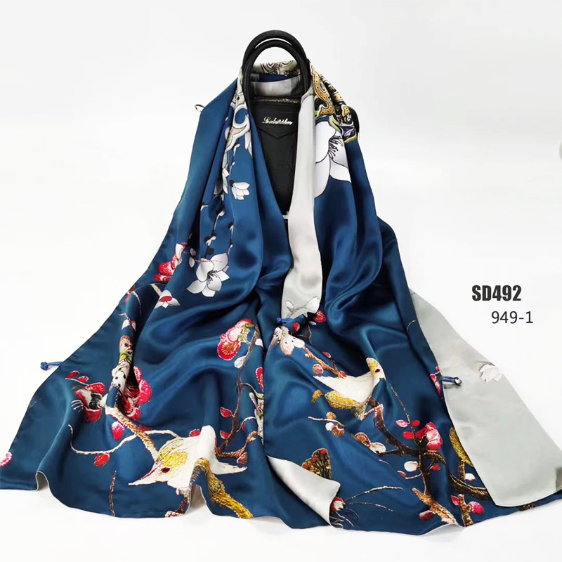 순수 실크 숄 여성용 뽕나무 실크 스카프 빈티지 수제 버클 양면 롱 실크 스카프 치파오 어머니의 선물스토어 가기