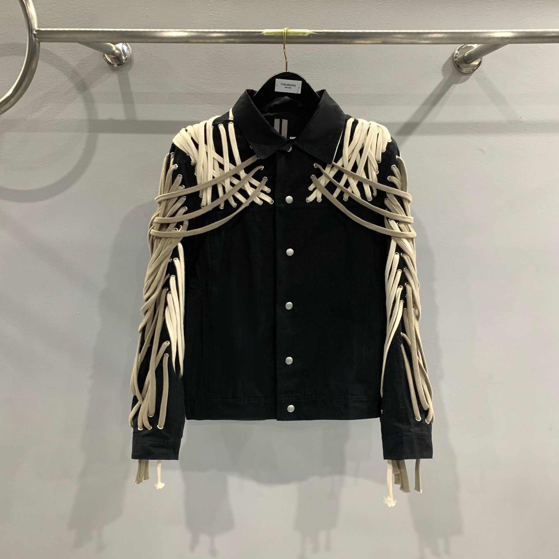 SUBHUMAN 남성용 丨2020 다크 하이 스트리트 끈 장식 재킷 남녀 공용 재킷 베이지색 루즈핏 캐주얼스토어 가기