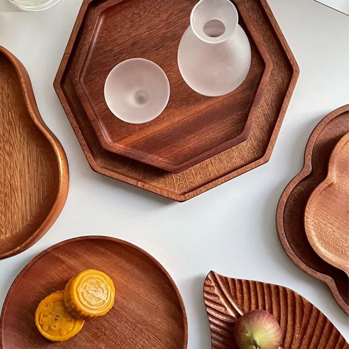 산청 일본식 접시 도매 고가과일 접시 목제 차 접시 빵 간식 접시 단단한 나무 트레이 나무 접시