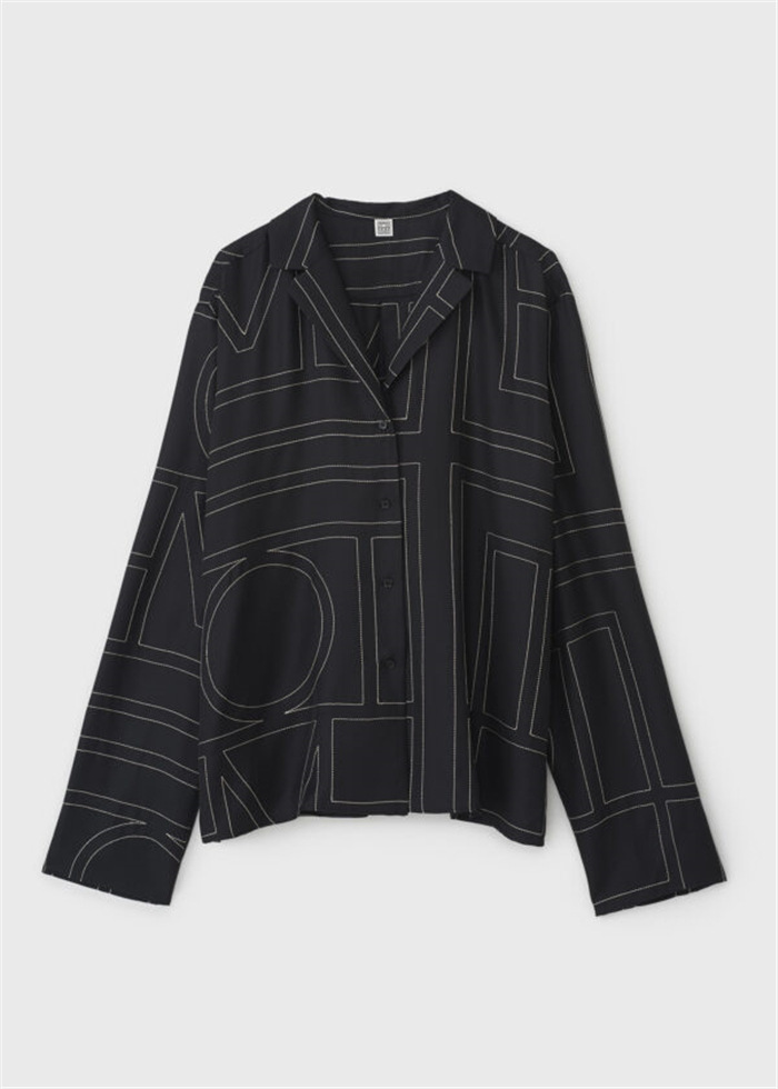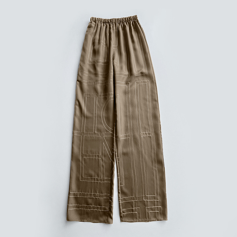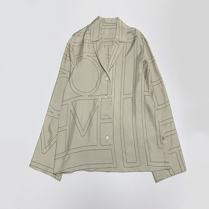 INS 북유럽 스타일 블로거 사비 작은 문어 100% 실크 자수 긴팔 루즈핏 셔츠와 바지 세트