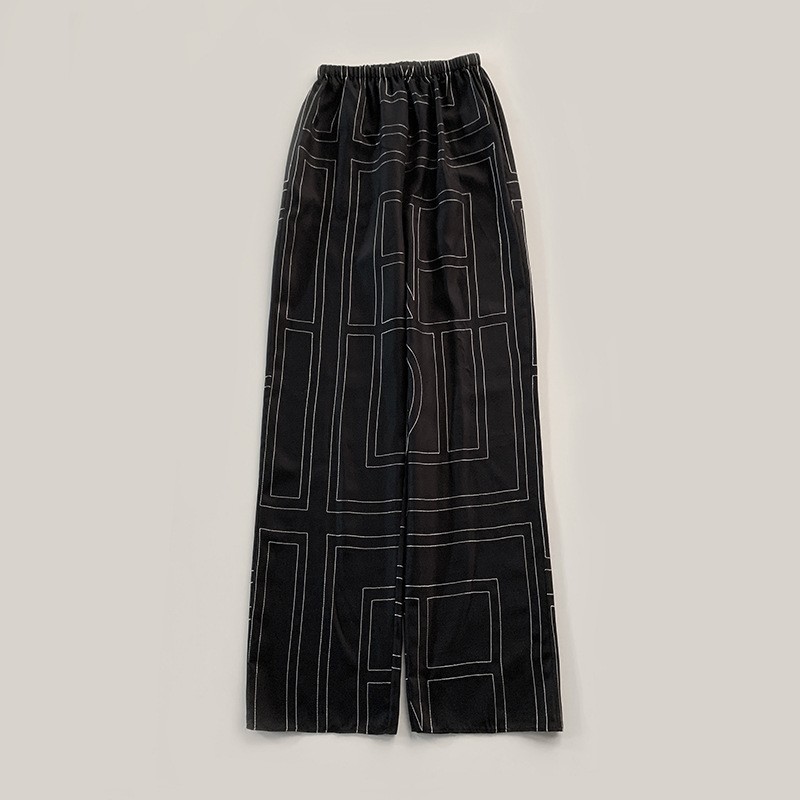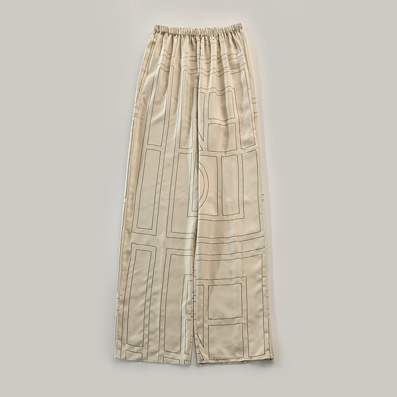 INS 북유럽 스타일 블로거 사비 작은 문어 100% 실크 자수 긴팔 루즈핏 셔츠와 바지 세트스토어 가기