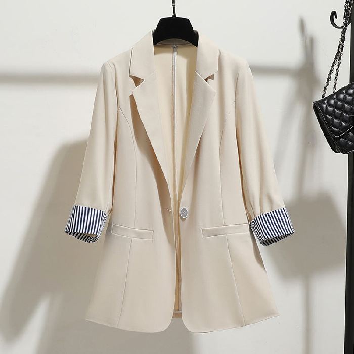 여성용 스몰 블레이저 2024 봄 가을 신상 한국 스타일 슬림핏 드레이프 얇은 7부 소매 정장 재킷