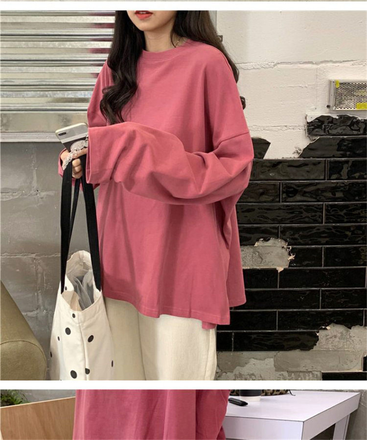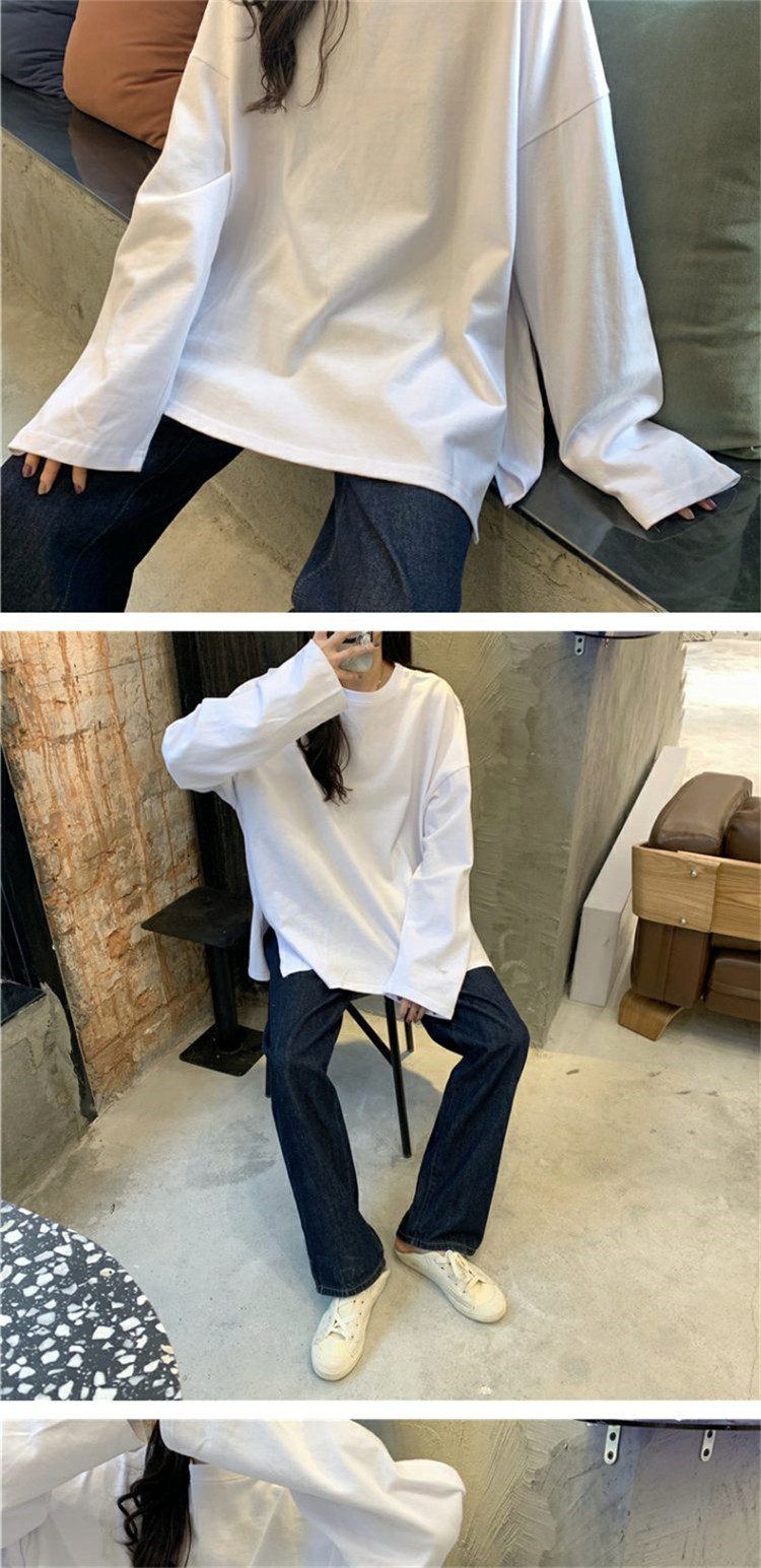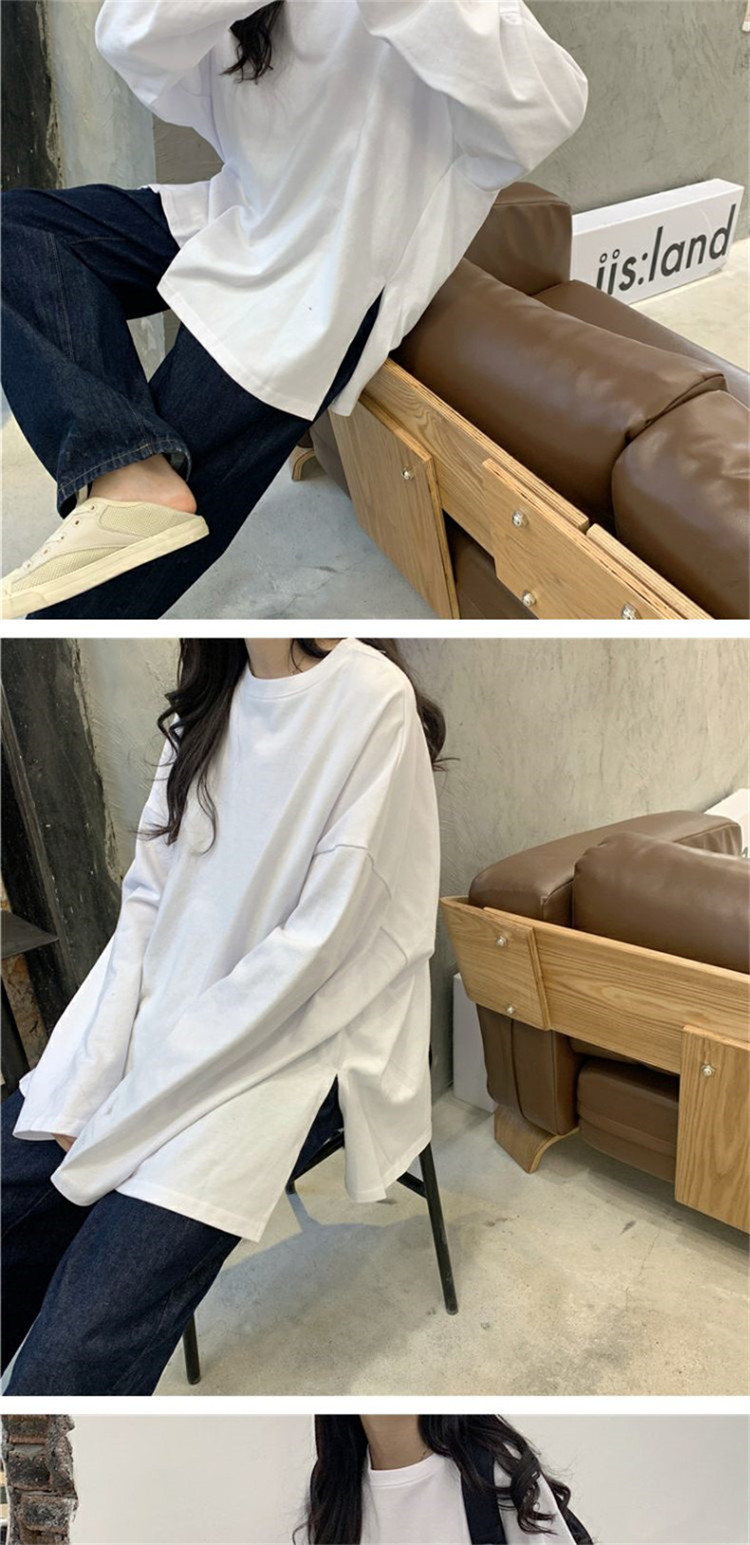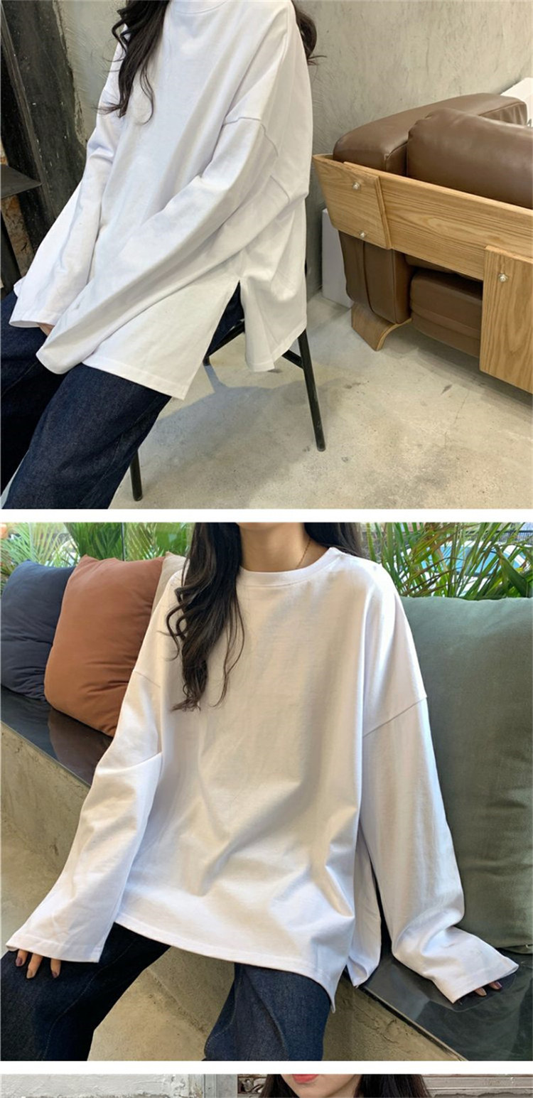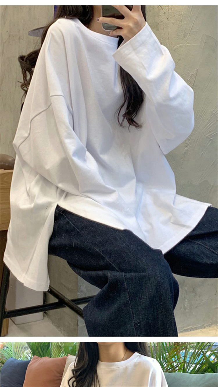 2025 가을 슬릿 솔리드 컬러 긴팔 티셔츠 여성 패션 하의 셔츠 한국 스타일 트렌디한 학생 아우터 루즈 탑스토어 가기
