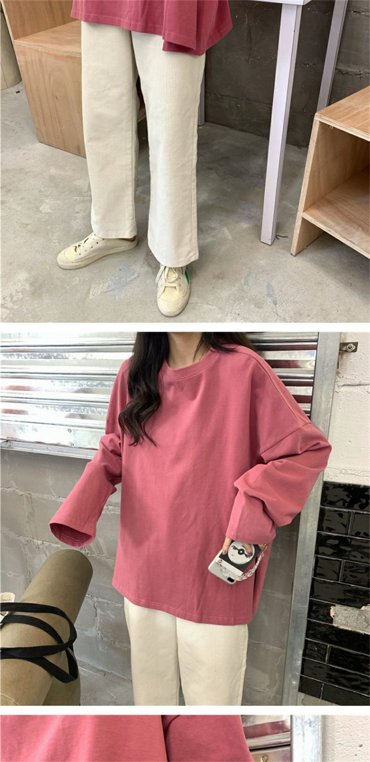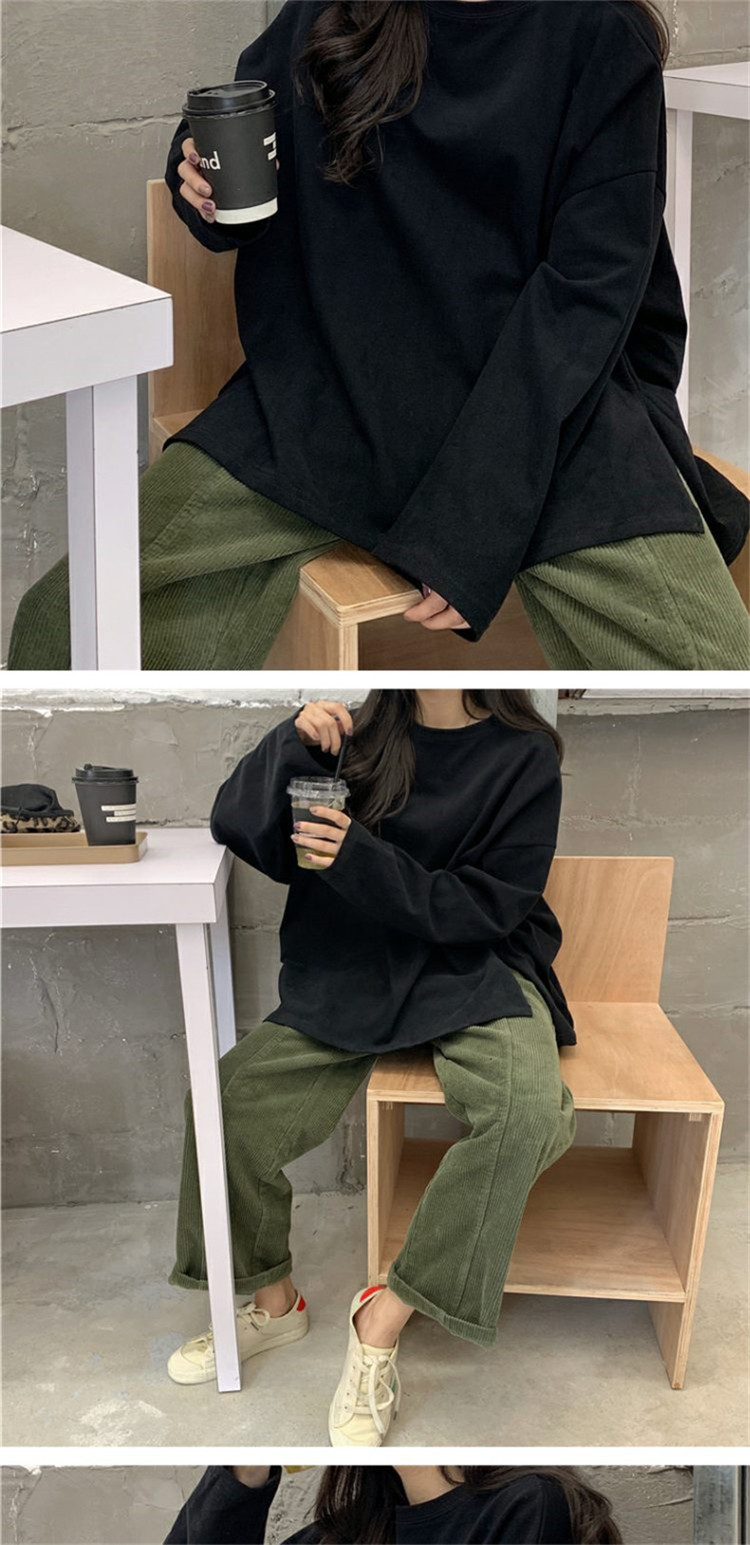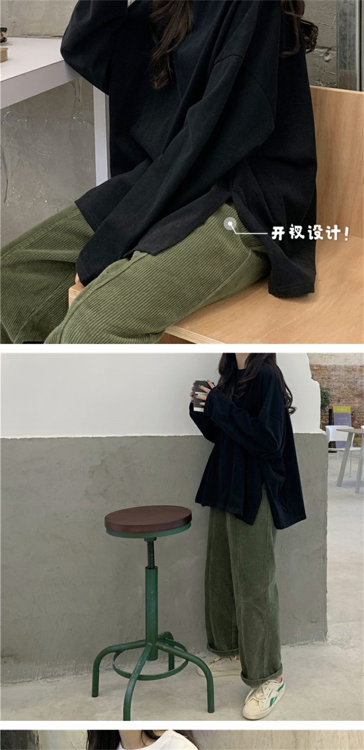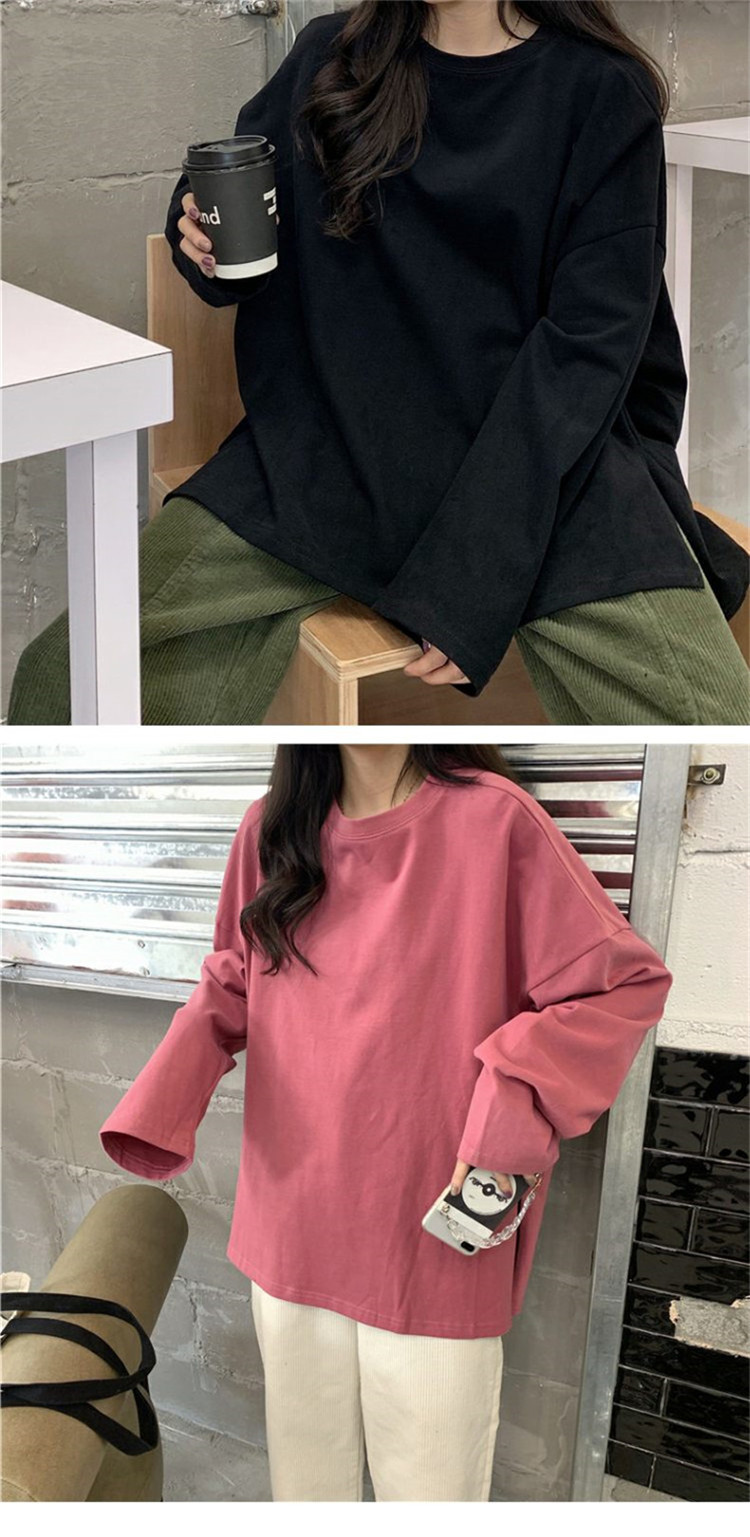 2025 가을 슬릿 솔리드 컬러 긴팔 티셔츠 여성 패션 하의 셔츠 한국 스타일 트렌디한 학생 아우터 루즈 탑스토어 가기