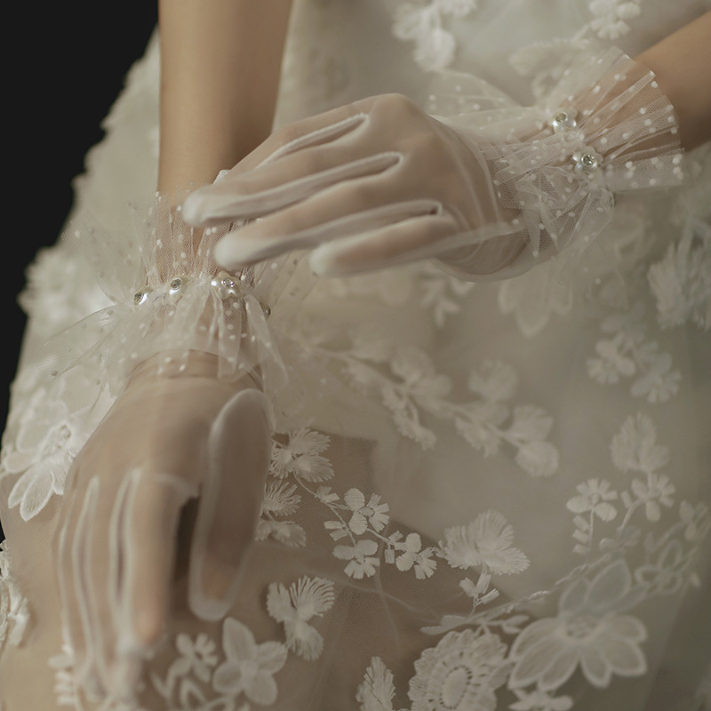 • 새틴 초승달 구슬 장갑