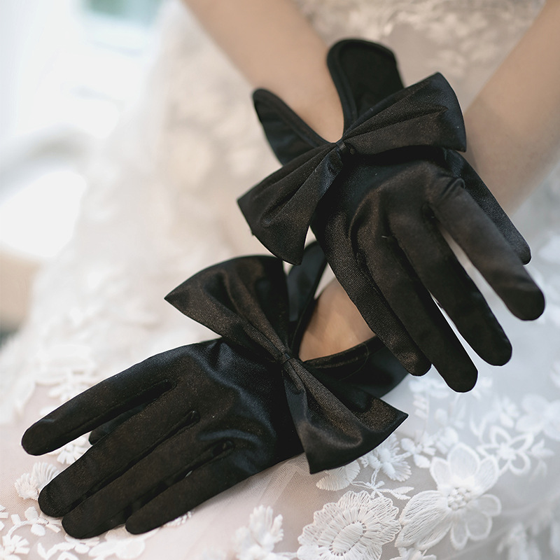 • 블랙 새틴 대형 활 장갑