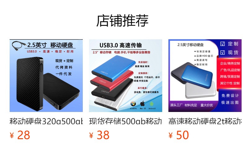 도매형 크로스보더 휴대용 모바일 하드 드라이브 1TB 고속 노트북 및 모바일 게임용 하드 드라이브 2TB 대용량 500GB스토어 가기