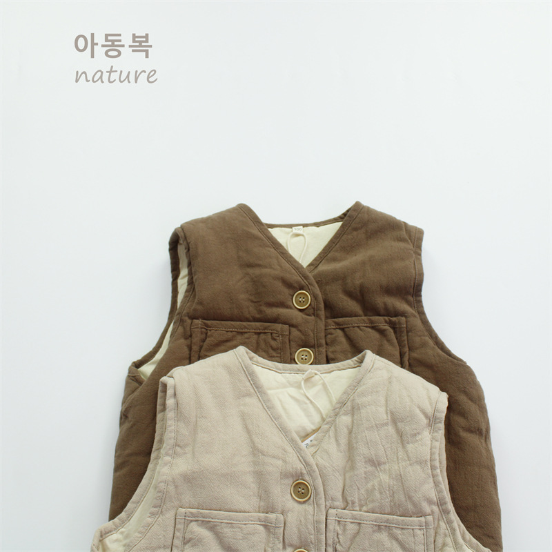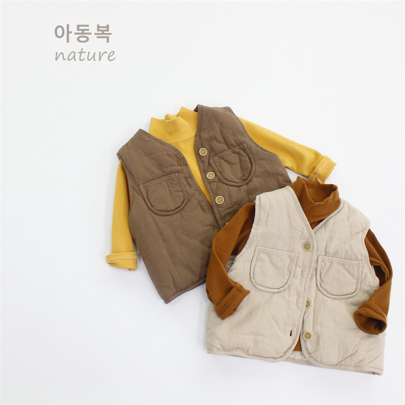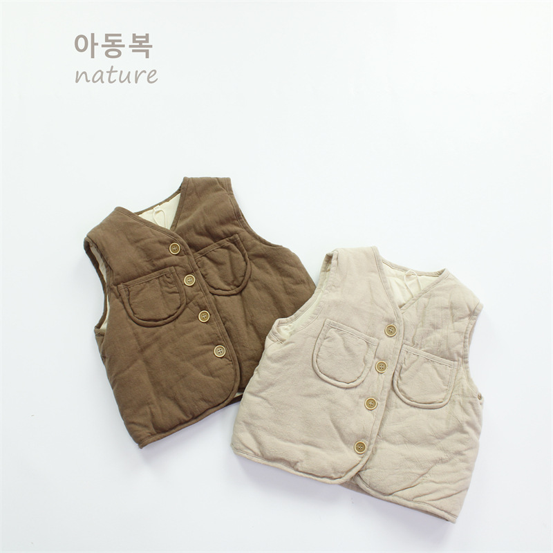 아동용 조끼 가을 겨울 두꺼운 아기 조끼 A급 한국 스타일 루즈핏 단색 다용도 남아 여아 상의 누빔