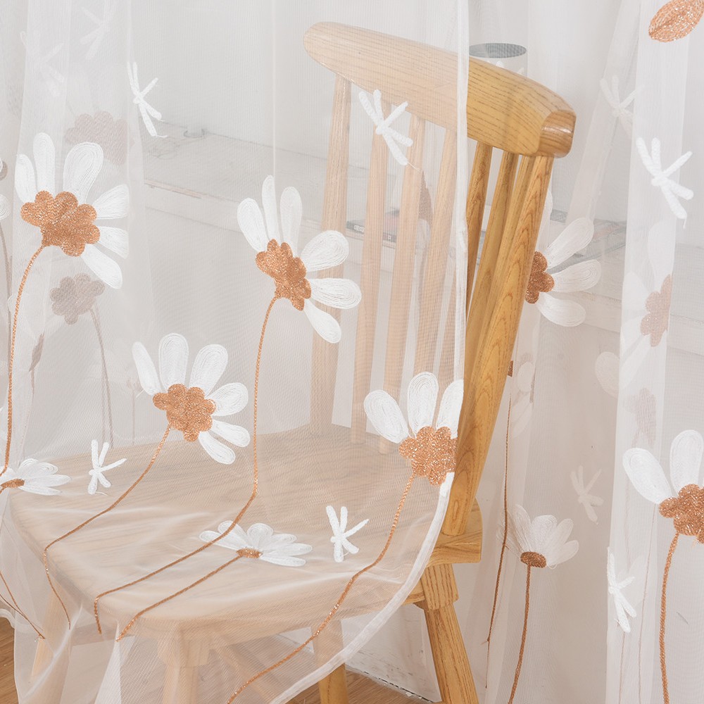 창 스크린 국화 자수 공장 직접 판매 거실 침실 간단한 커튼 투명 현대 간단한 패브릭 완제품