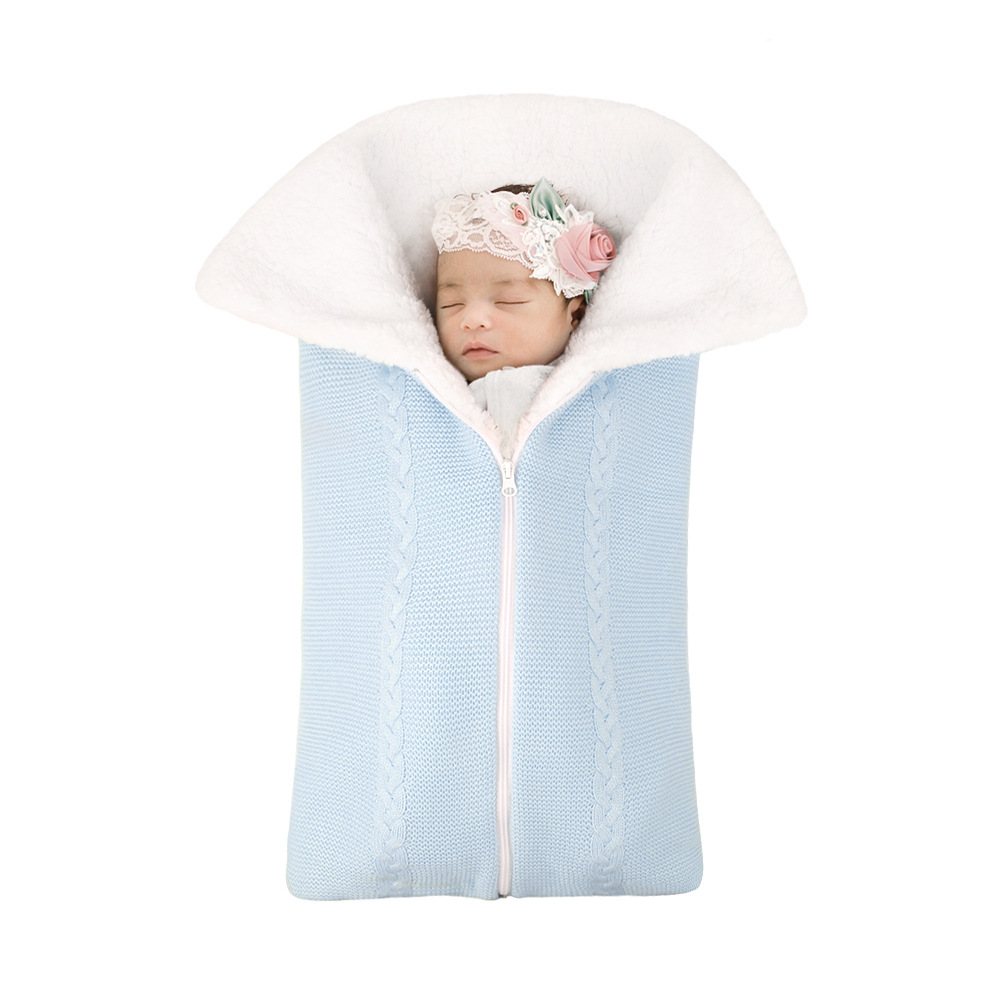 핫세일 신상품 모직 니트 플러스 벨벳 아기 수면조끼 유모차용 지퍼 수면조끼 담요 일체형스토어 가기