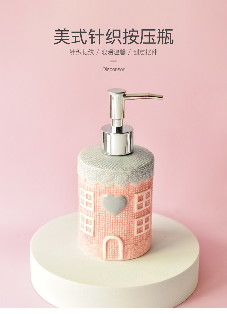 미국 창조적 인 핑크 세라믹 손 소독제 병 욕실 세면 도구 스타일 장식 장식품 프레스 병