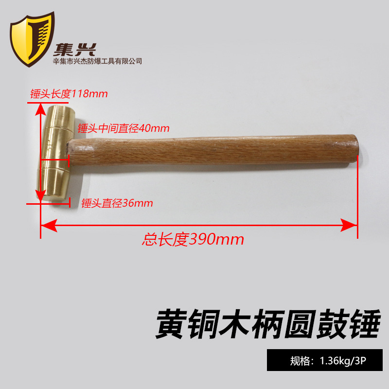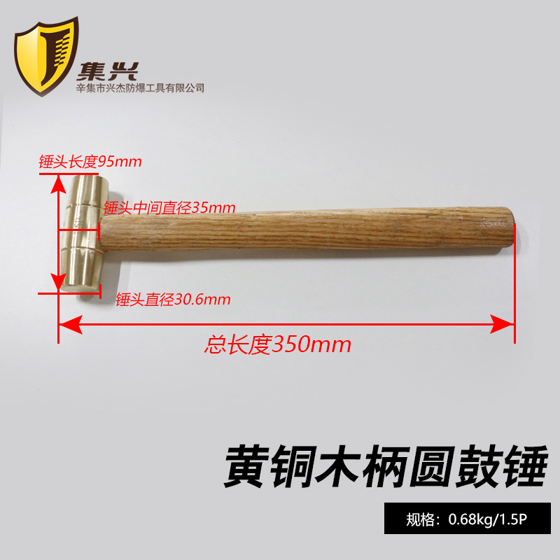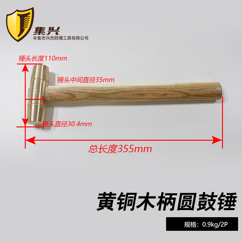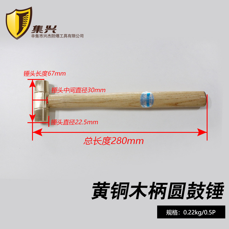황동 원형 망치 나무 손잡이 원형 헤드 망치 방폭 안전 무스파크 핸드 망치 주유소 부품 구리 망치 0.5p-3p스토어 가기