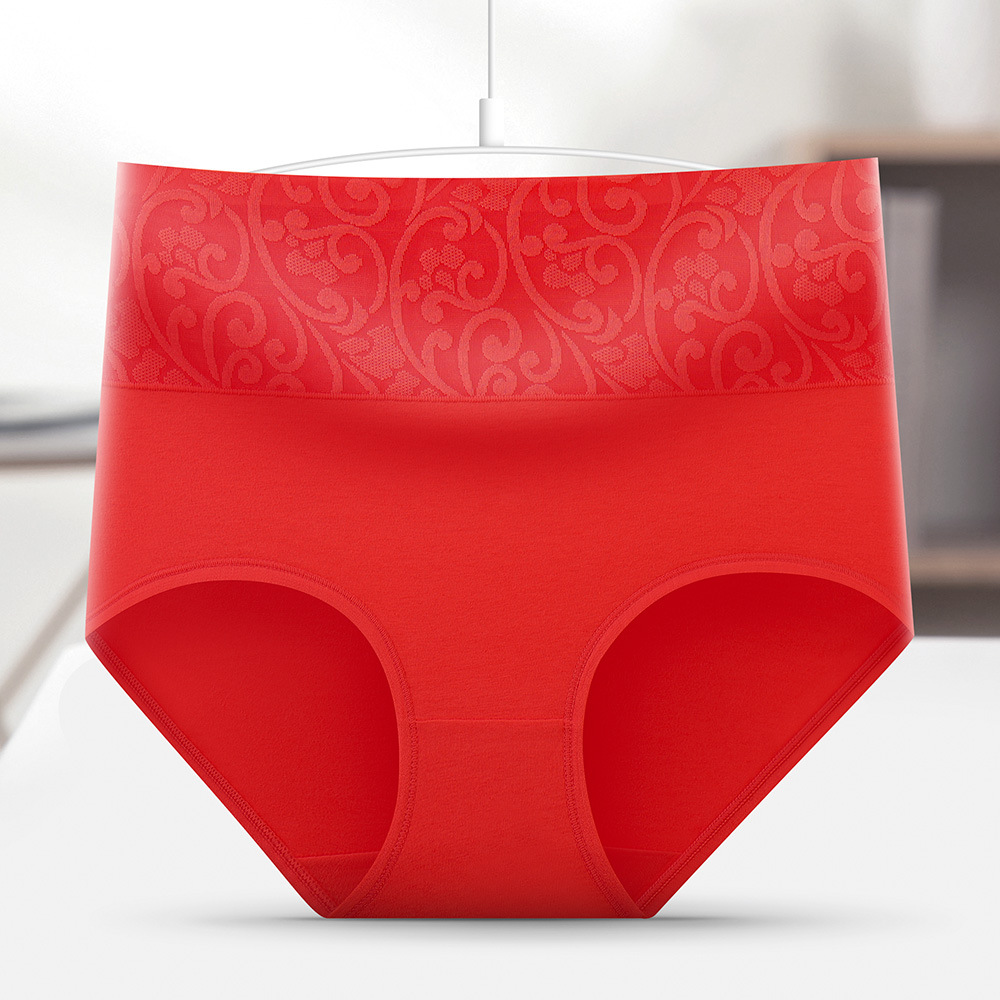 하이 웨이스트 자카드 속옷 여성용 순면 통기성 복부 엉덩이 리프팅 녹색 중년 여성 어머니 바디 쉐이핑 단색 팬티스토어 가기