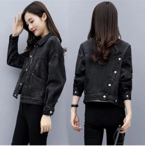 크로스 보더 후드 데님 재킷 여성의 짧은 봄과 가을 한국식 새로운 긴팔 슬림 핏 재킷 학생 탑스토어 가기