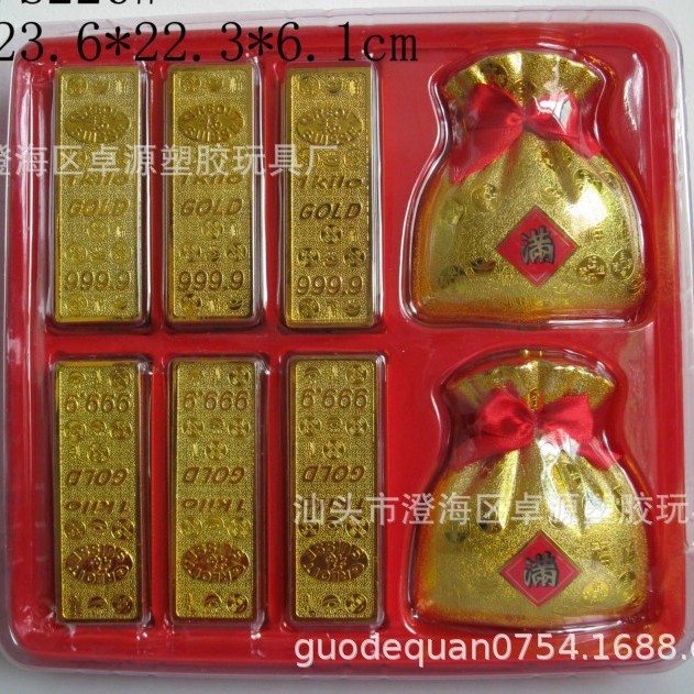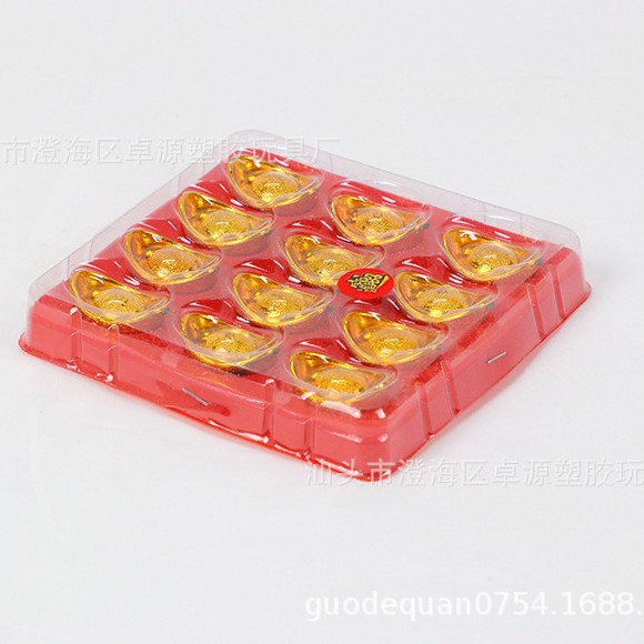 신과 불상 앞에 바치는 행운의 장식품, 새해 장식, 플라스틱 주괴, 금화, 금괴, 금벽돌, 금화