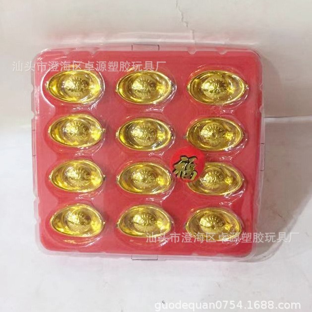 迎神佛前贡品摆件,家庭过年装饰塑料元宝金钱金币金条金砖财神系列,