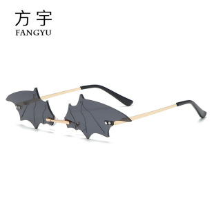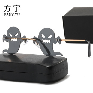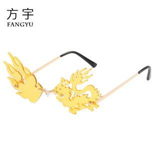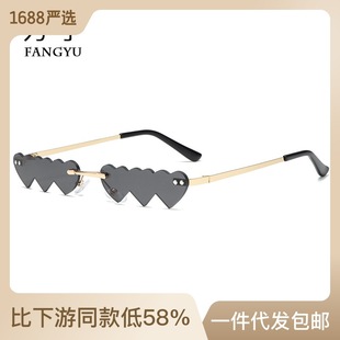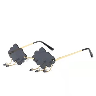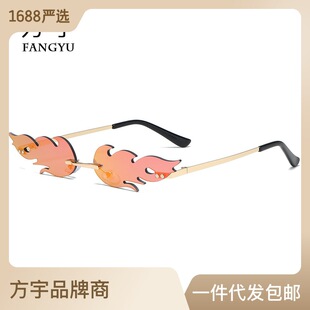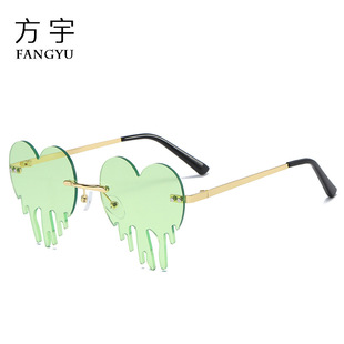 새로운 무테 선글라스 여성 오각형 성격 다채로운 바다 조각 선글라스 여름 유행 안경 도매 027