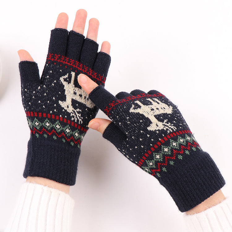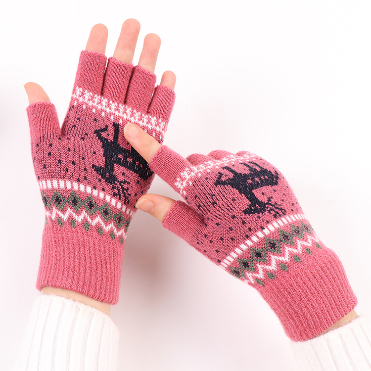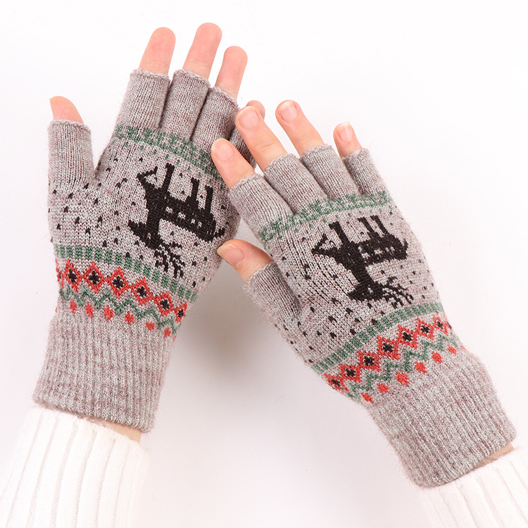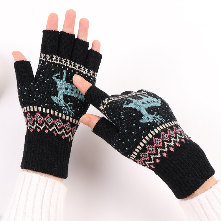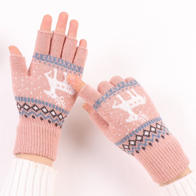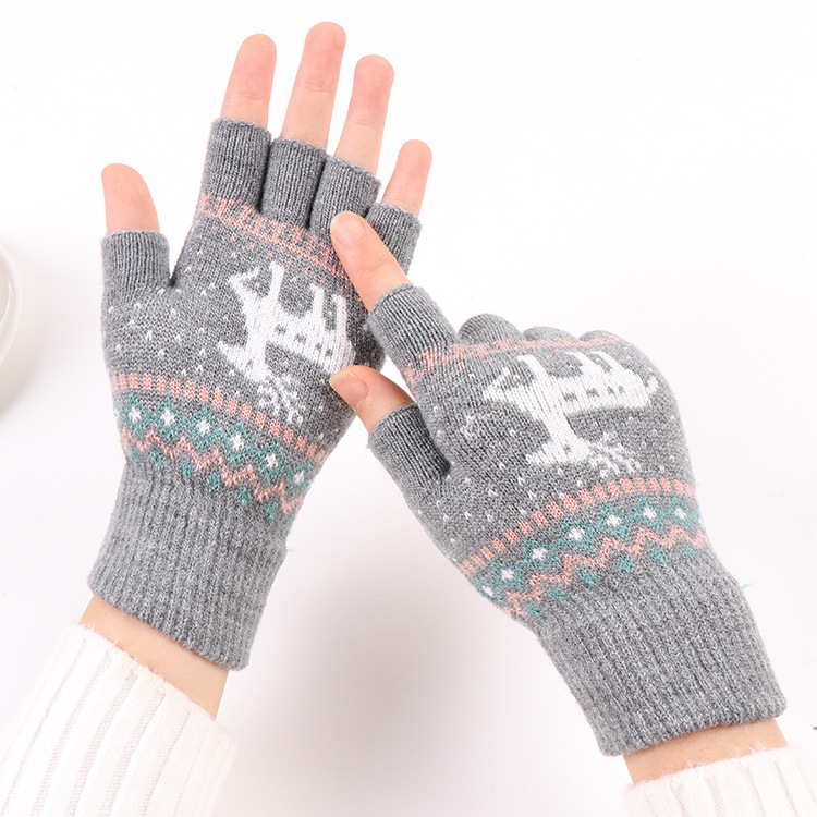 남성과 여성을위한 반 손가락 장갑 성인 사무실 쓰기 터치 스크린 니트 울 따뜻한 만화 귀여운 한국 스타일 가을과 겨울