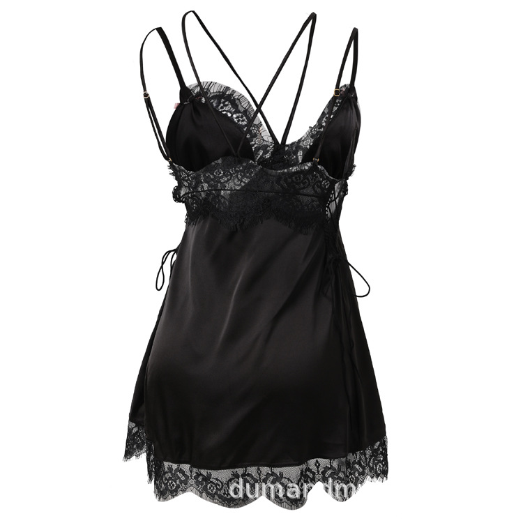 프랑스 스타일 레이스 슬링 나이트가운 순수 섹시 스플릿 새틴 나이트가운 여성용 침대 티어링 모방 아이스 실크 잠옷스토어 가기
