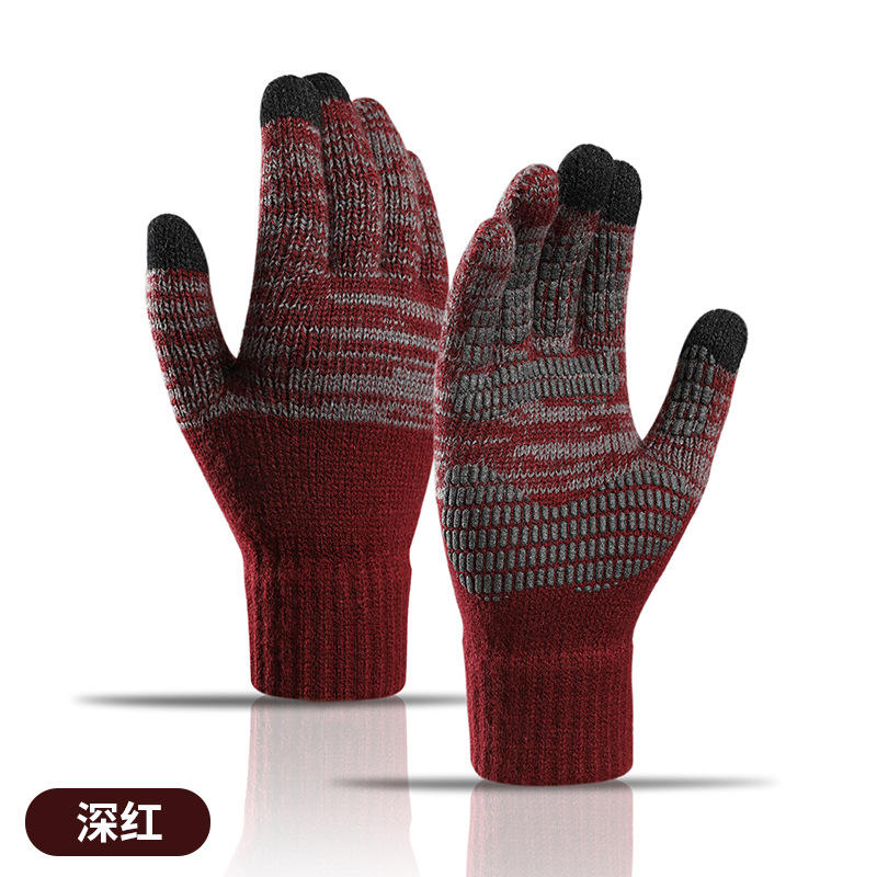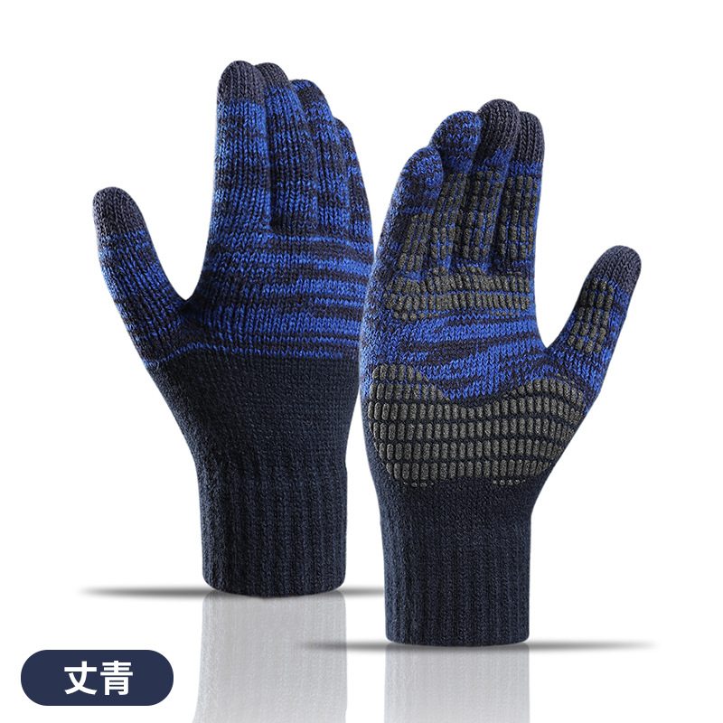 국경 간 독점 니트 장갑 대외 무역 대형 남성 가을, 겨울 플러스 벨벳 컬러 매칭 오프셋 터치 스크린 따뜻한 장갑