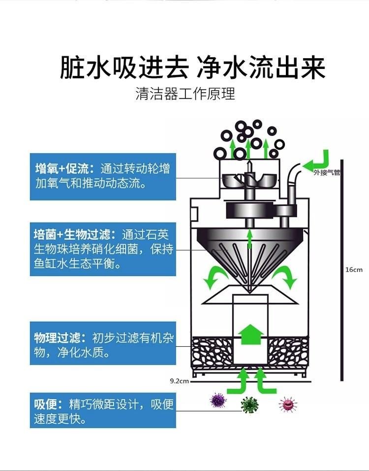 강제 흡입 화장실 필터 물 고블린 산소 증가 박테리아 물 정화 자동 청소 대변 어항 가스 리프팅