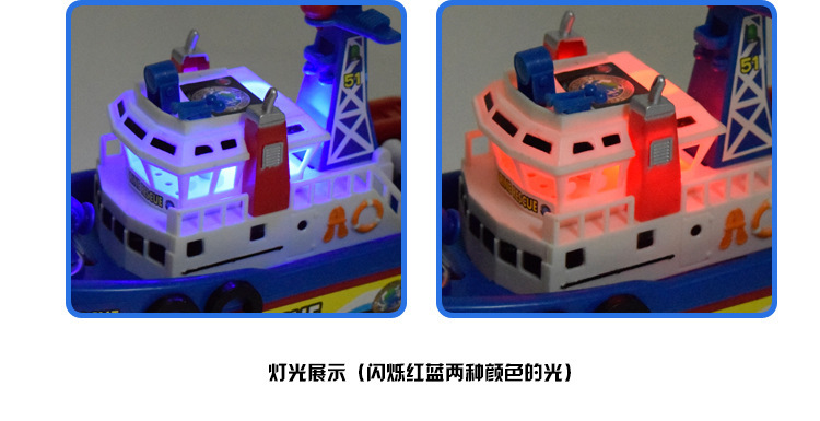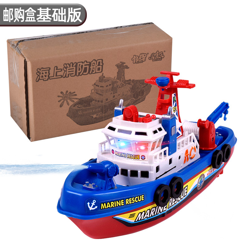 창조적 인 어린이 모델 화재 보트 전기 장난감 음악 빛나는 물 스프레이 목욕 장난감 보트 마구간 도매