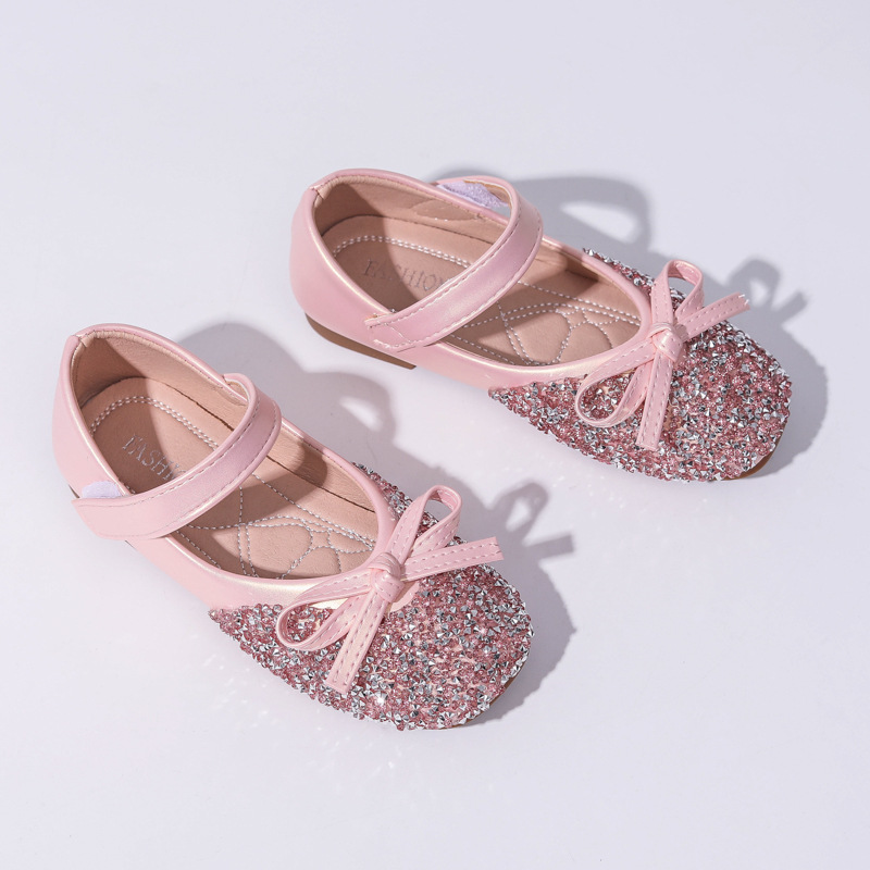 2025 가을 새로운 스팽글 소녀 공주 신발 라인 석 소녀 크리스탈 신발 학생 신발 성능 반짝 이는 댄스 신발
