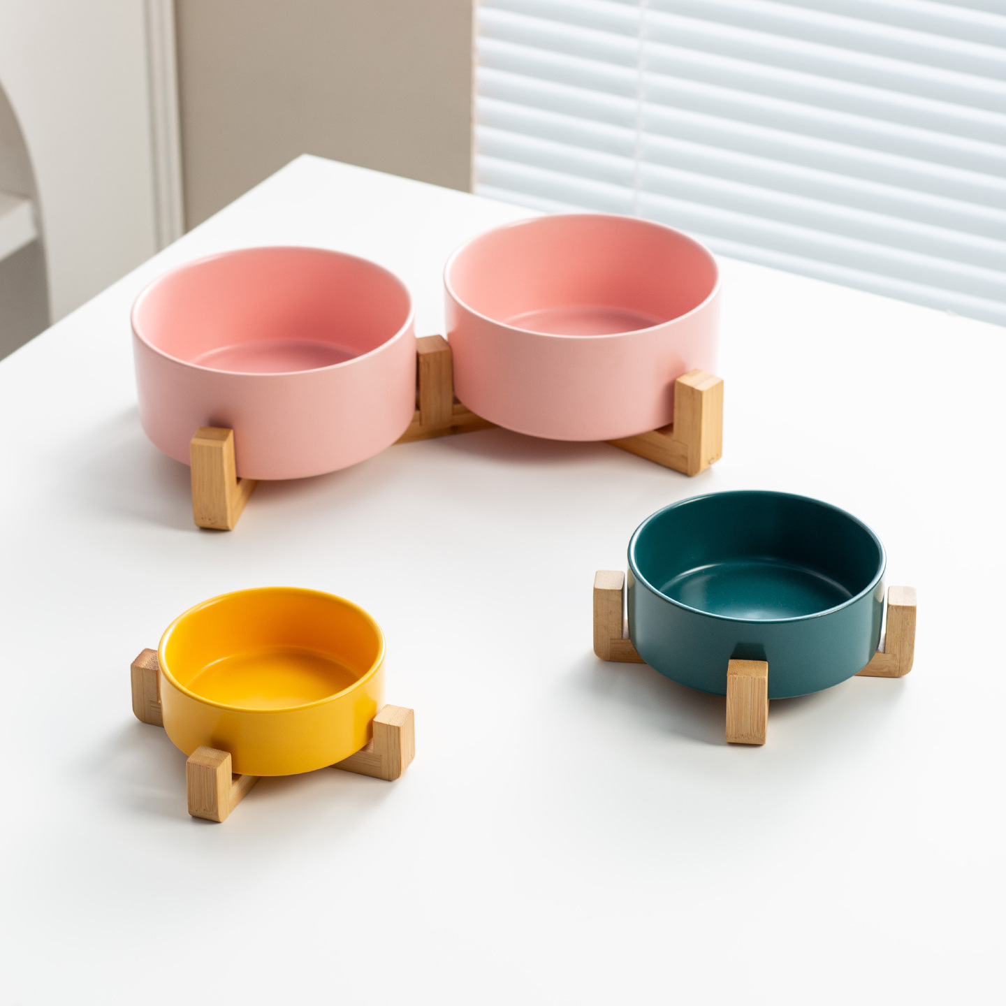 고양이 그릇 세라믹 이중 그릇 물 그릇 통합 나무 프레임 보호 자궁 경부 척추 높은 개 그릇 개 그릇 마시는 그릇 간단한 애완 동물 그릇스토어 가기
