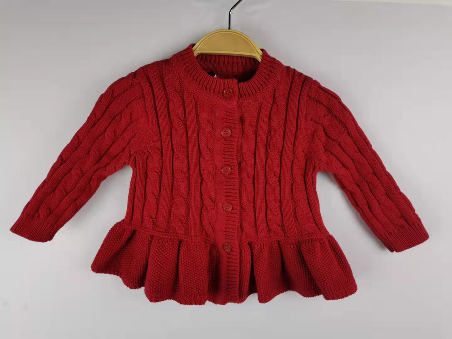 새로운 아기 봄과 가을 면 두꺼운 트위스트 스커트 귀여운 여자 라운드 칼라 스커트 스웨터 카디건 재킷