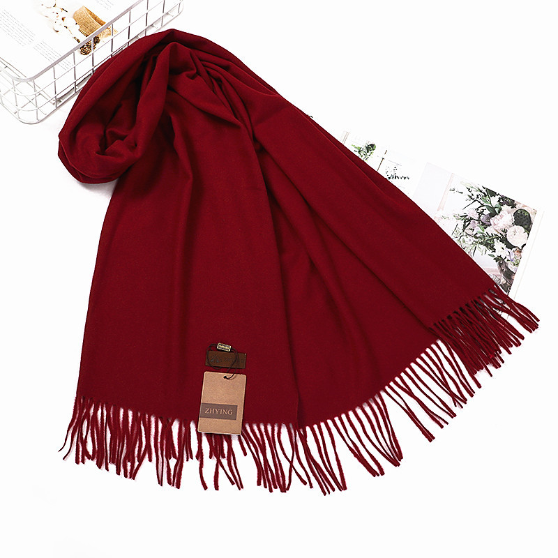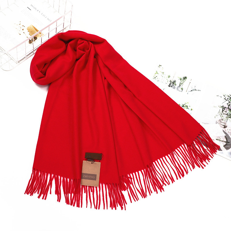 스카프 캐시미어 스카프 여성의 가을과 겨울 두꺼운 따뜻한 빨간 숄 겨울 스카프 단색 남성 울 스카프