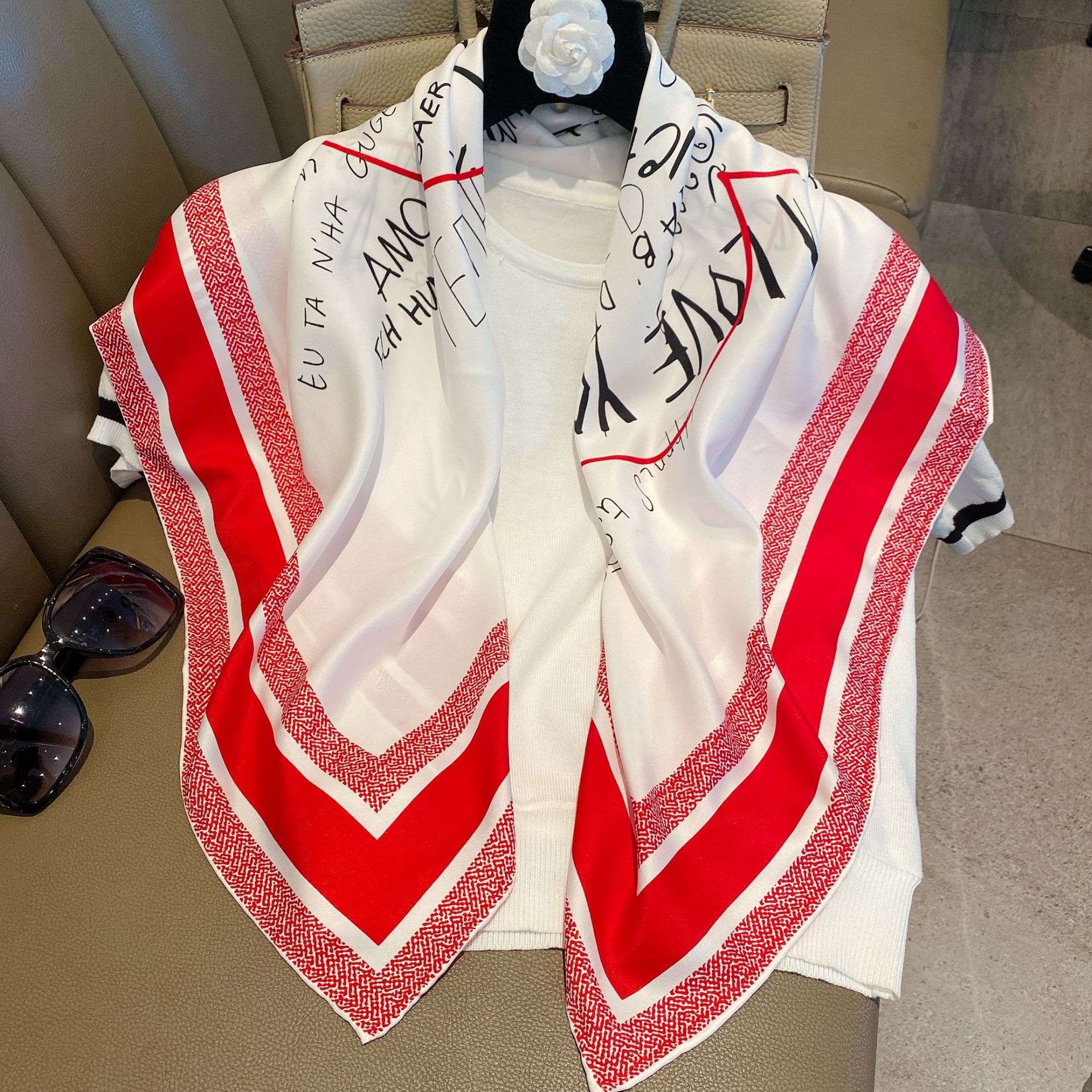 38 개 언어가 당신을 사랑한다고 말합니다 손으로 굴린 능직물 실크 같은 90 스퀘어 스카프 선 스크린 스카프 어머니의 날 선물