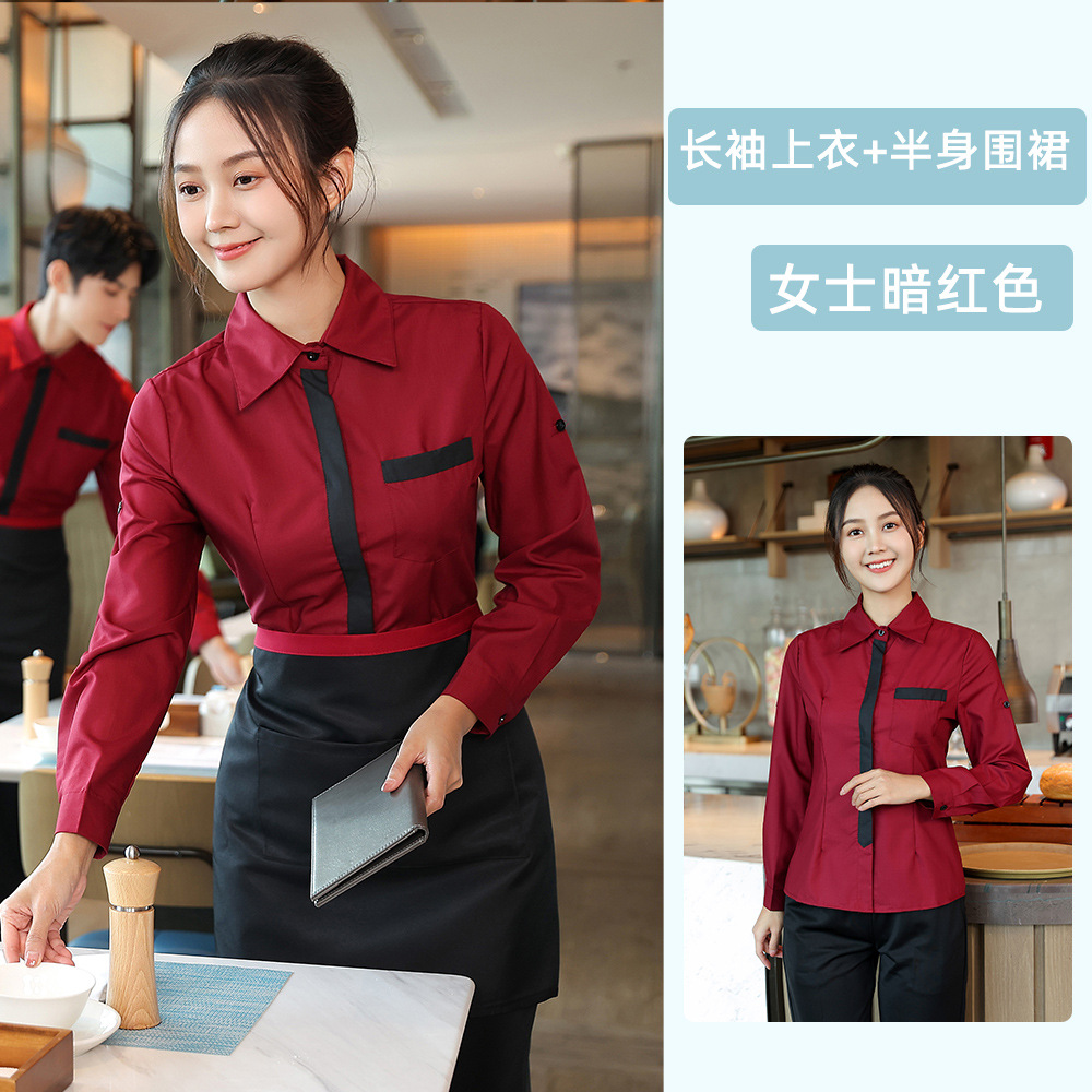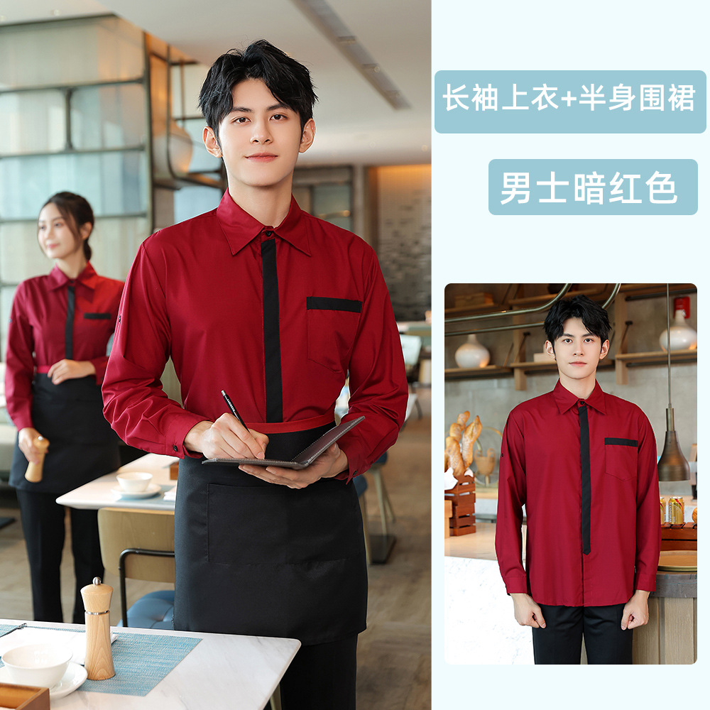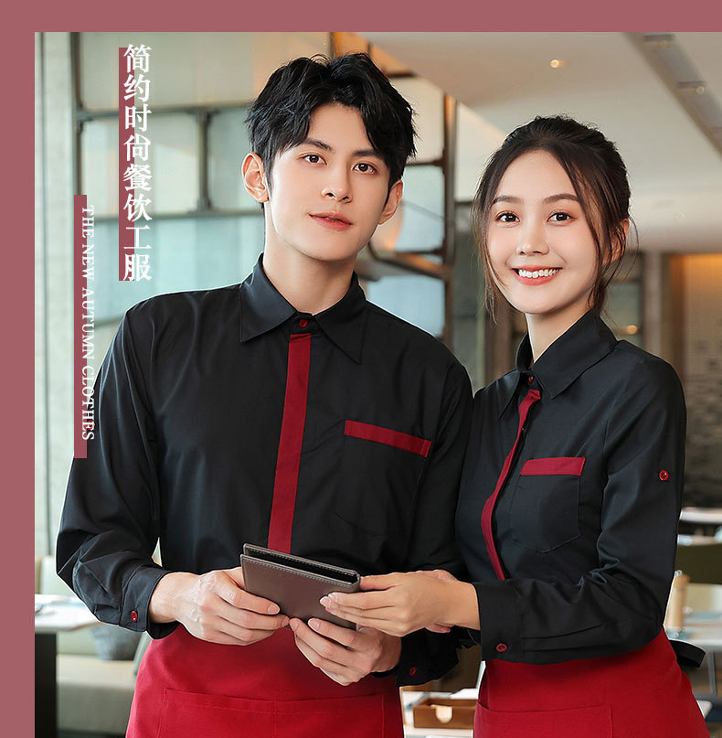 셔츠 웨이터 작업복 가을과 겨울 긴 소매 패스트 푸드 카페 함부르크 핫팟 호텔 직원 셔츠 세트
