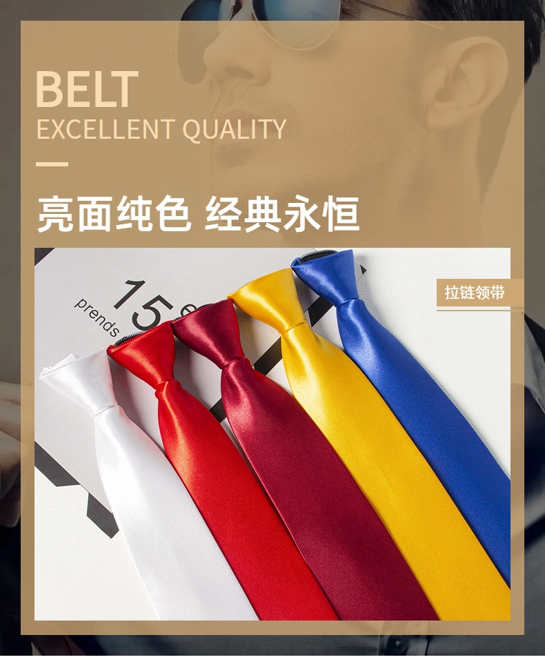 도매 폴리에스터 실크 남성용 지퍼 타이, 블랙, 쉽게 당기는 단색, 8cm 정장용 화살표 무늬스토어 가기