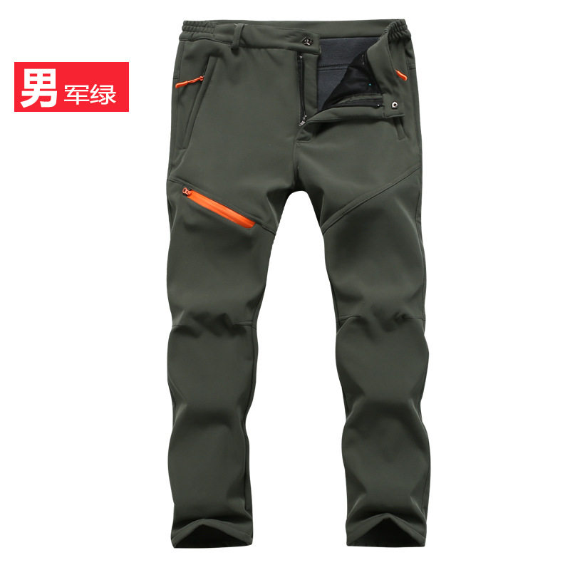남자의 야외 기모 두꺼운 방수 방풍 등반 바지 여자의 겨울 따뜻한 바지 단색 크로스 보더스토어 가기