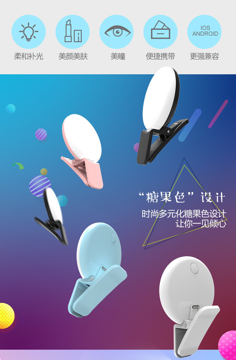 새로운 휴대폰 미니 휴대용 보조광 LED 외부 라이브 스트리밍 플래시 라이트 뷰티 셀카 얼굴 조명스토어 가기