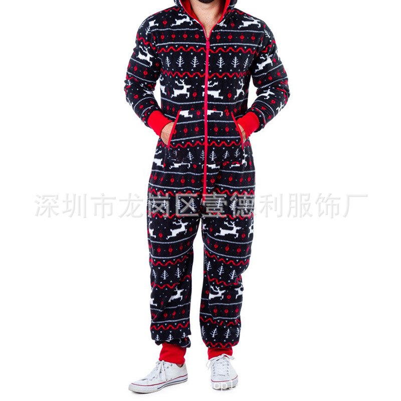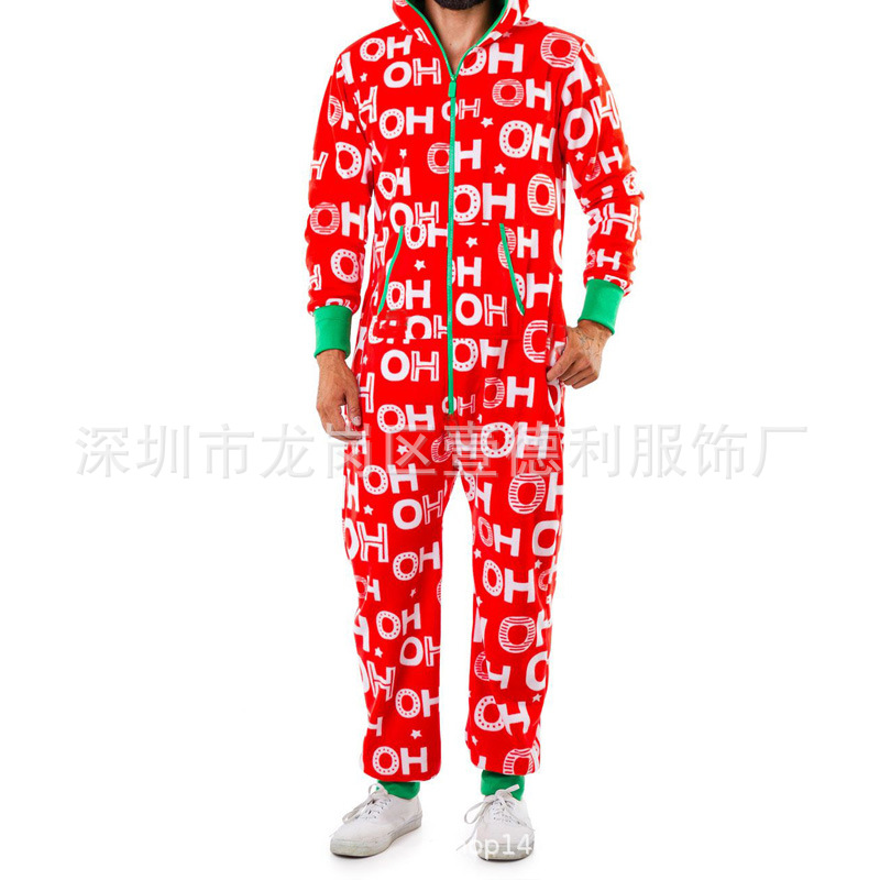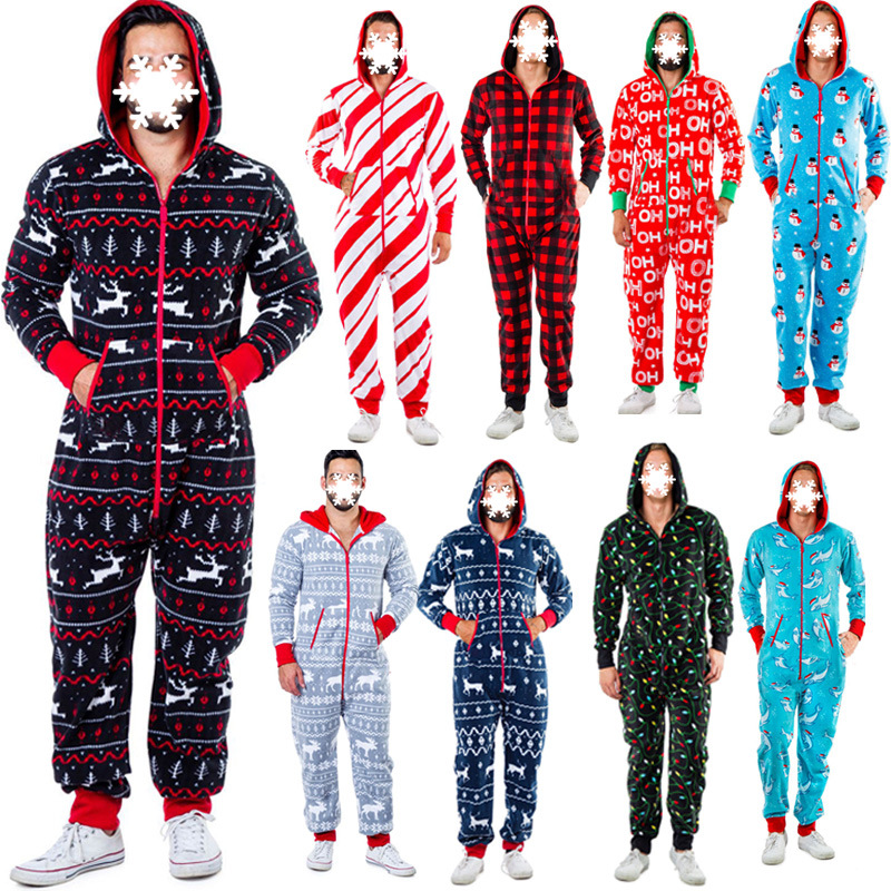 크리스마스 홈웨어 핫 세일 사슴 눈사람 스트라이프 프린트 멀티 컬러 대형 남성용 점프수트 잠옷 SU2195스토어 가기
