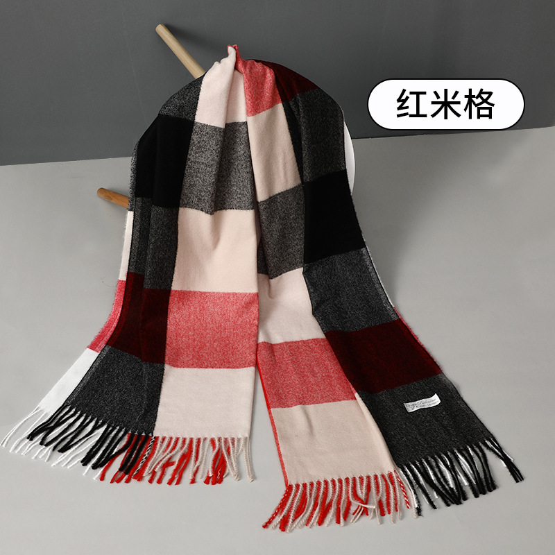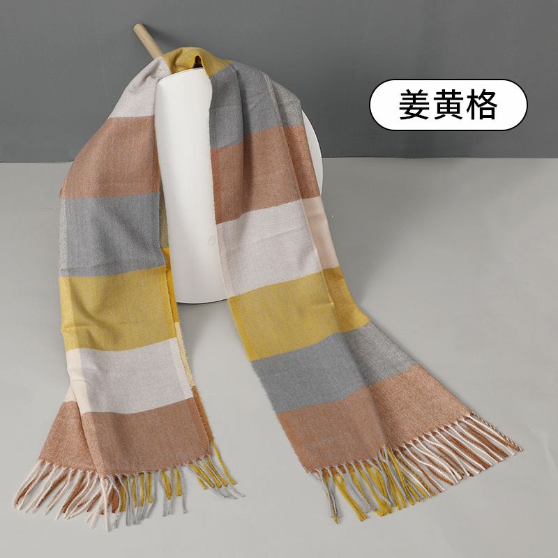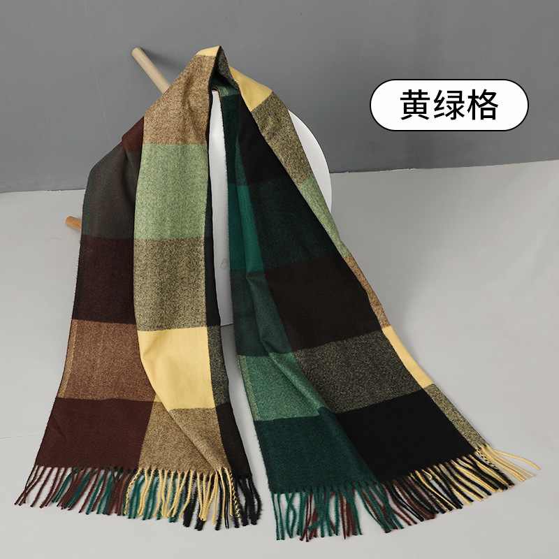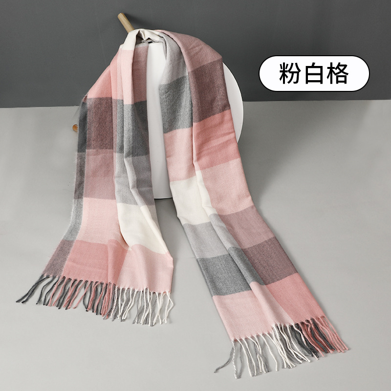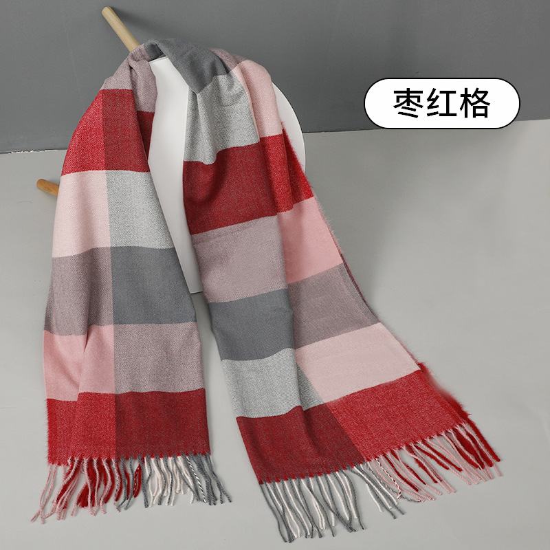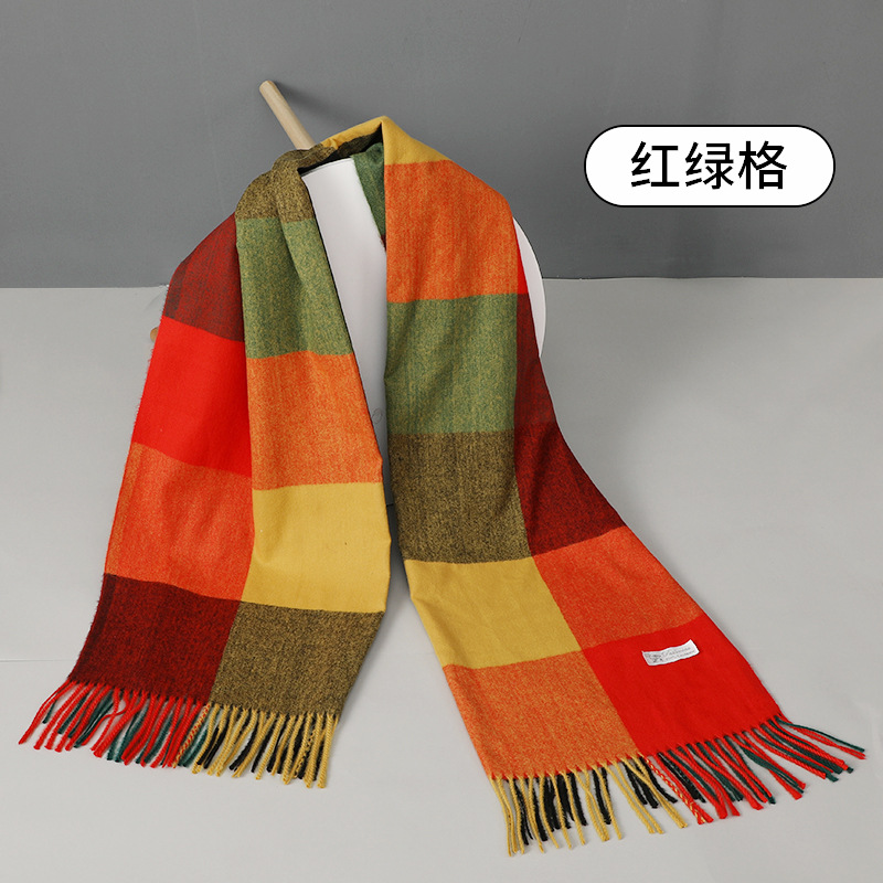 围巾批发新款仿羊绒彩格围巾女跨境秋冬加厚格子围巾流苏披肩围脖