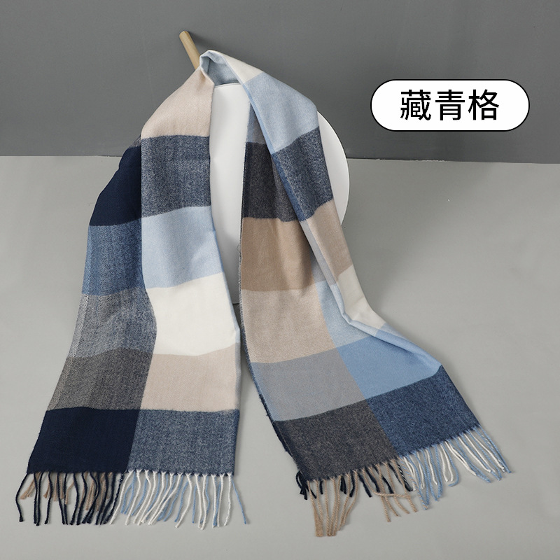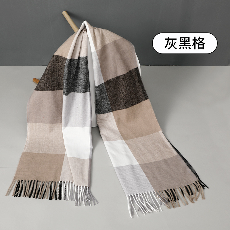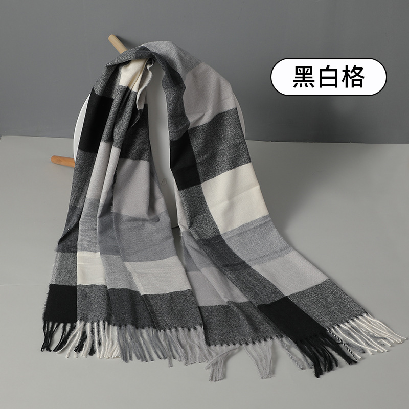 新款欧美简约格子仿羊绒围巾学生情侣冬季加厚保暖围巾高级感披肩