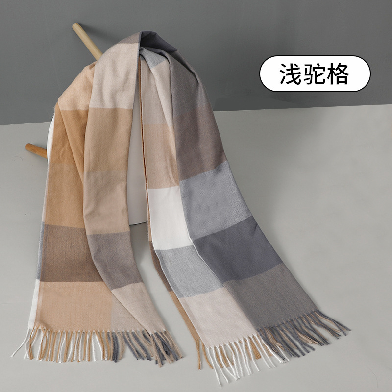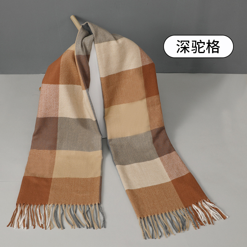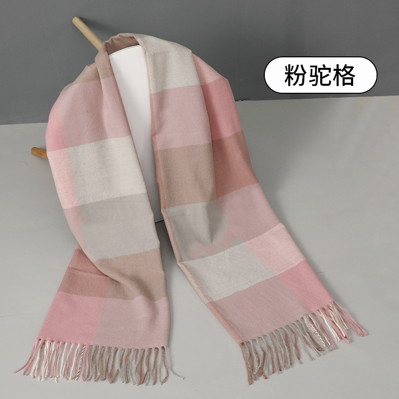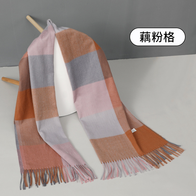2024新款加厚格子围巾女生秋冬季保暖时尚仿羊绒流苏披肩外贸批发