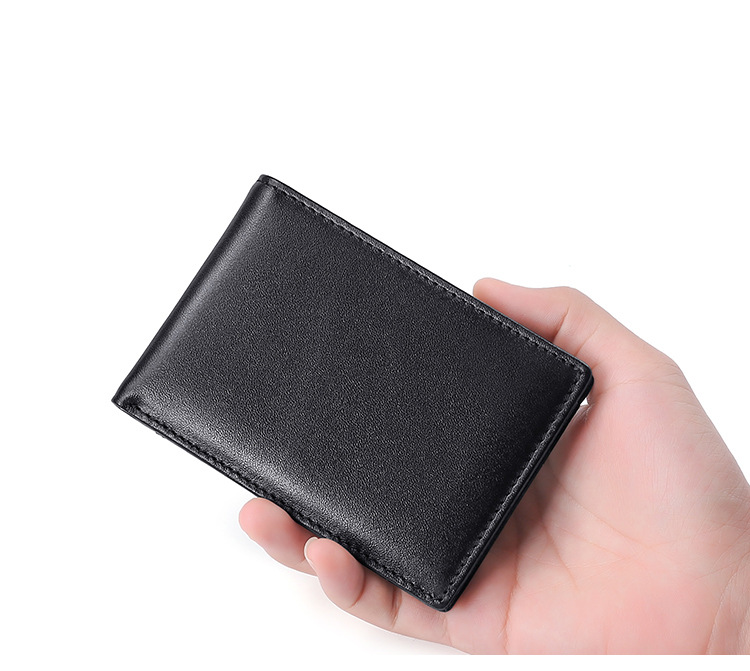 크로스 보더 새로운 유럽과 미국 남성 패션 정품 가죽 지갑 안티 RFID 도난 브러시 짧은 골드 클립 푸시 카드 홀더 지갑